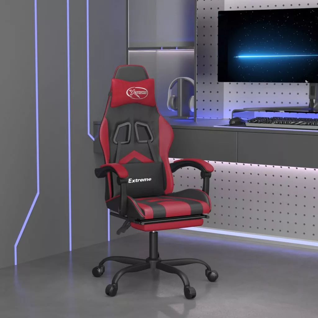 fekete és bordó műbőr játékszék lábtartóval