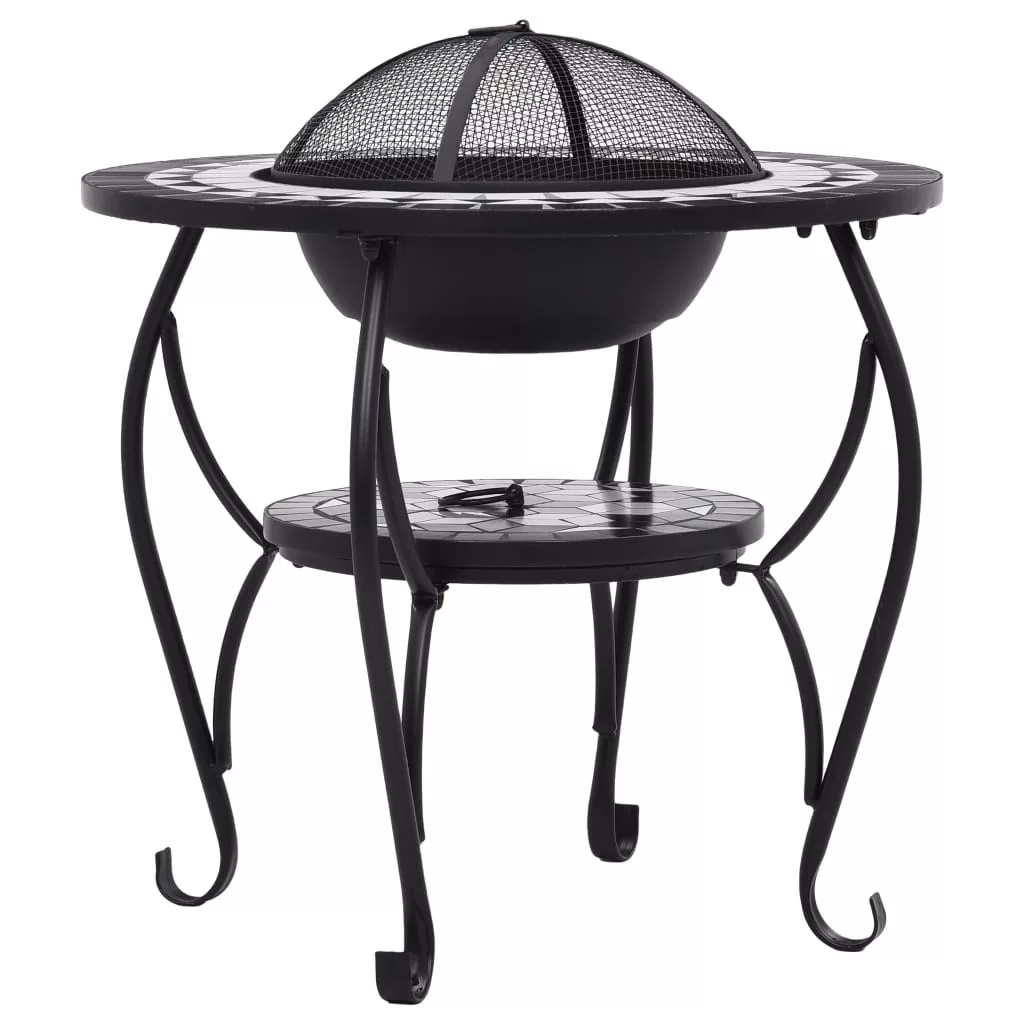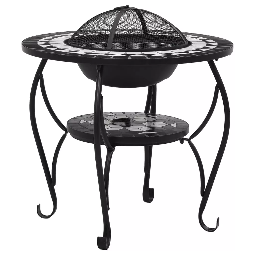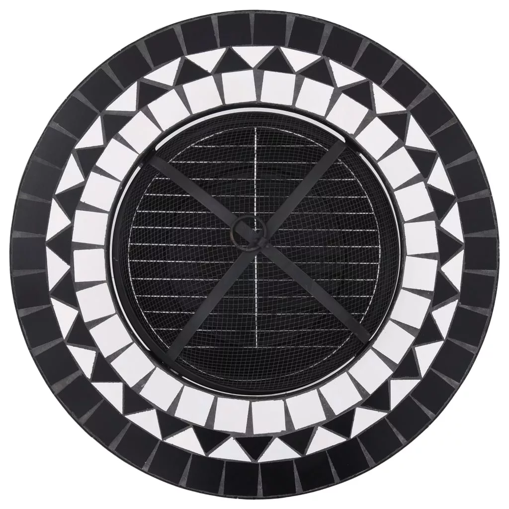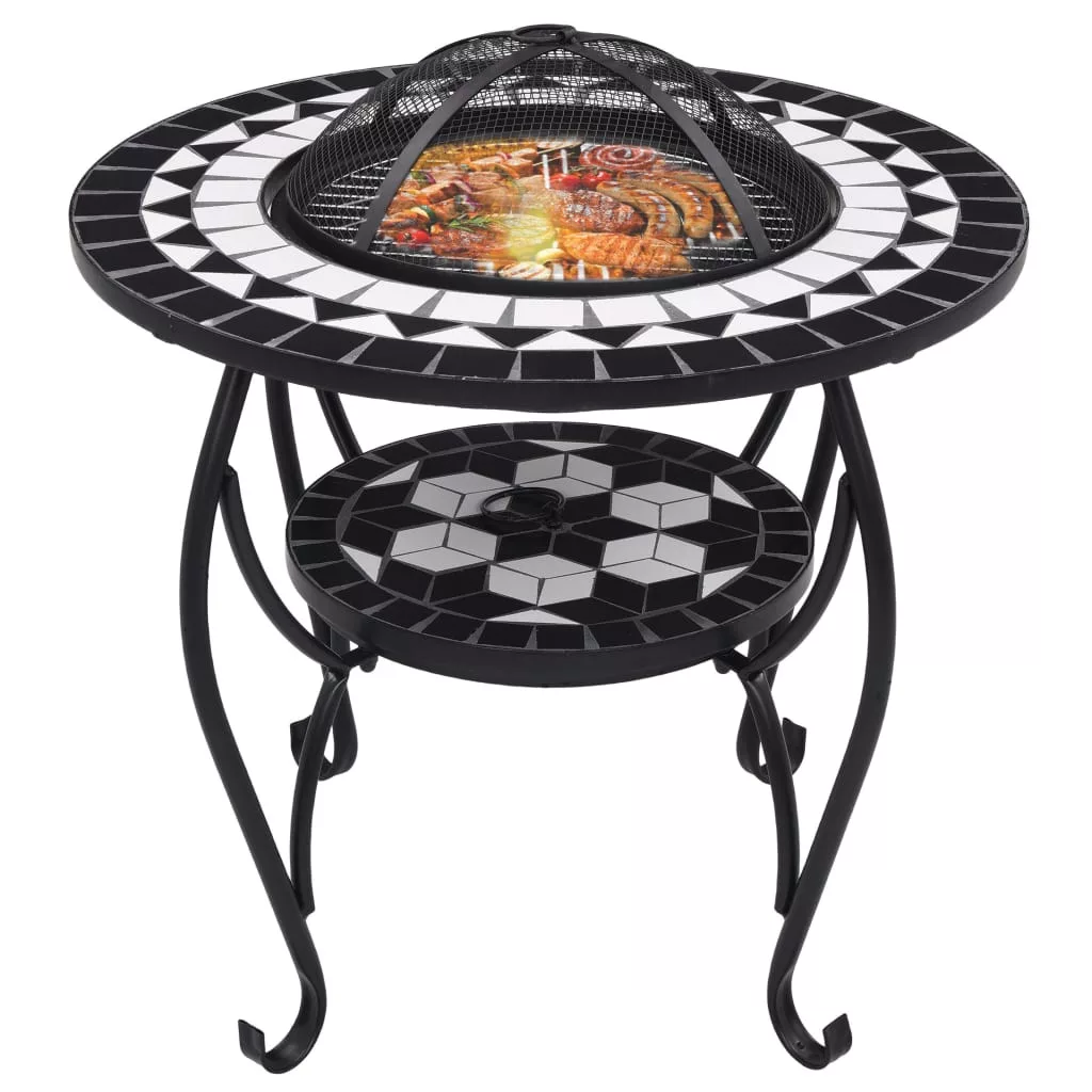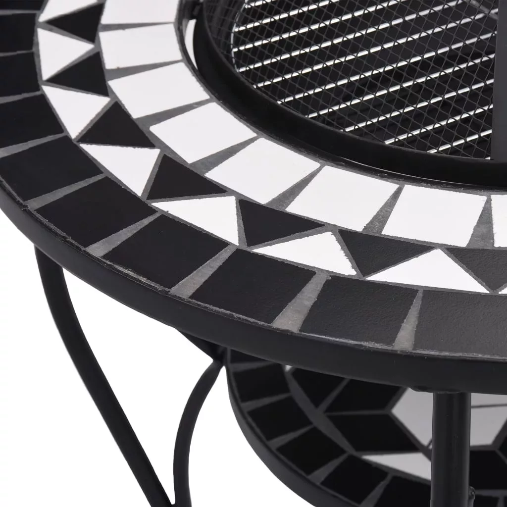 fekete és fehér kerámia mozaik tűztál asztallal 68 cm