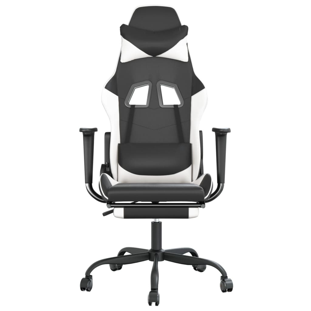 fekete és fehér műbőr játékszék lábtartóval