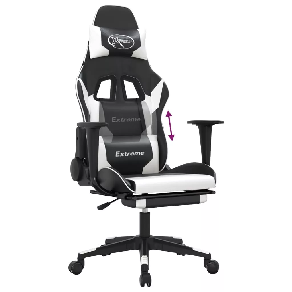 Üljön ezen az egyedülálló játékszéken és élvezze a kényelmes játékélményét! Tartós műbőr: A prémium minőségű műbőr rendkívül tartós anyag. Foltálló, így nedves ruhával könnyen tisztítható. A sima felület fényűző megjelenésű, és a valódi bőr szépségét biztosítja.Állítható háttámla és magasság: A fotel dönthető, így saját igénye szerint állíthatja be a háttámlát és a lábtartót. A kar segítségével tetszés szerint állíthatja be az ülés magasságát.Kényelmes kialakítás: A 360 fokban forgatható kivitel széles mozgástartományt biztosít. Ezenkívül a görgőkkel kényelmesen mozgatható.Masszív és stabil váz: A fémből és furnérlemezből készült vázak erős szerkezetet és stabilitást biztosítanak. Megjegyzés:Az egyszerű összeszerelés érdekében minden termékhez mellékelünk összeszerelési útmutatót.