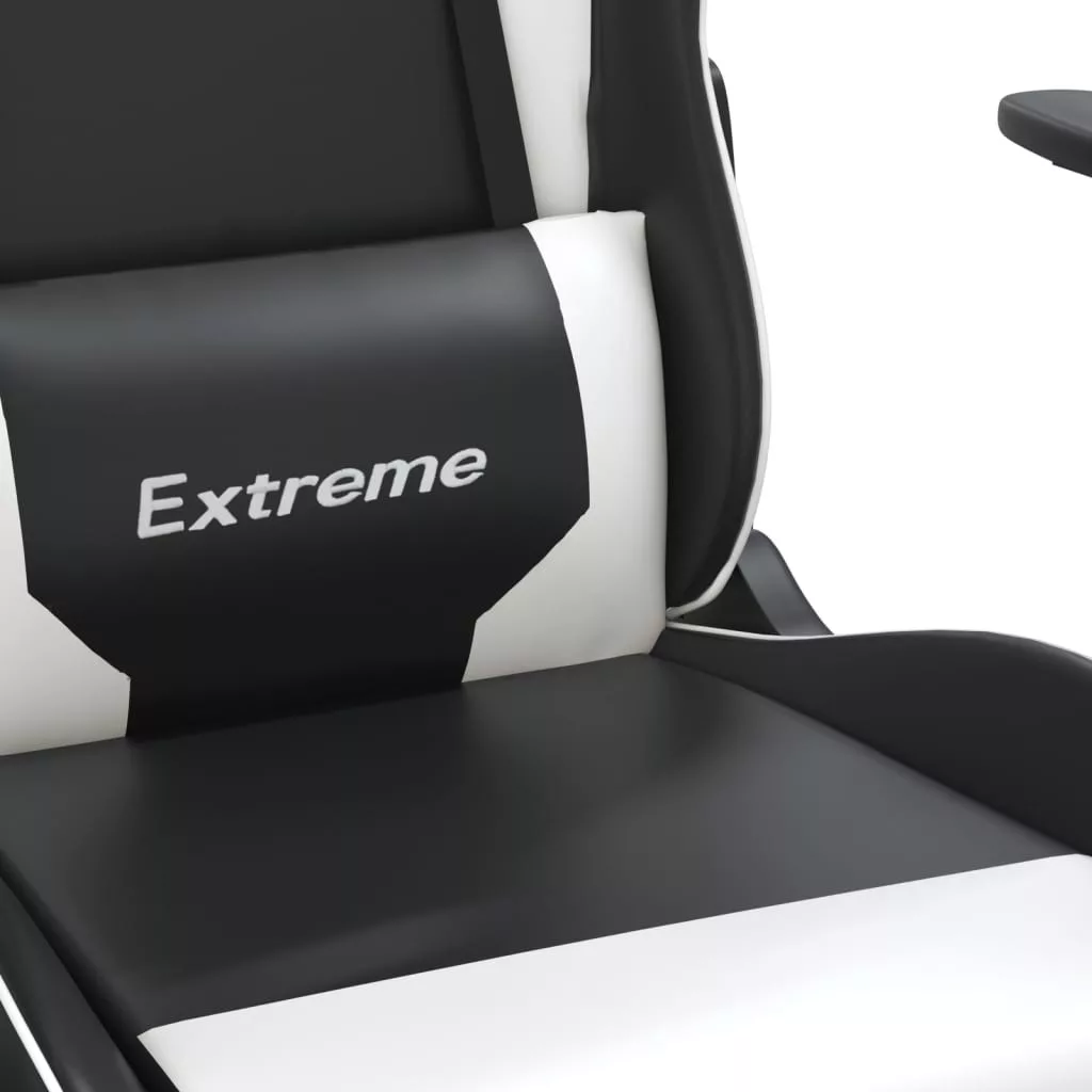 fekete és fehér műbőr játékszék lábtartóval
