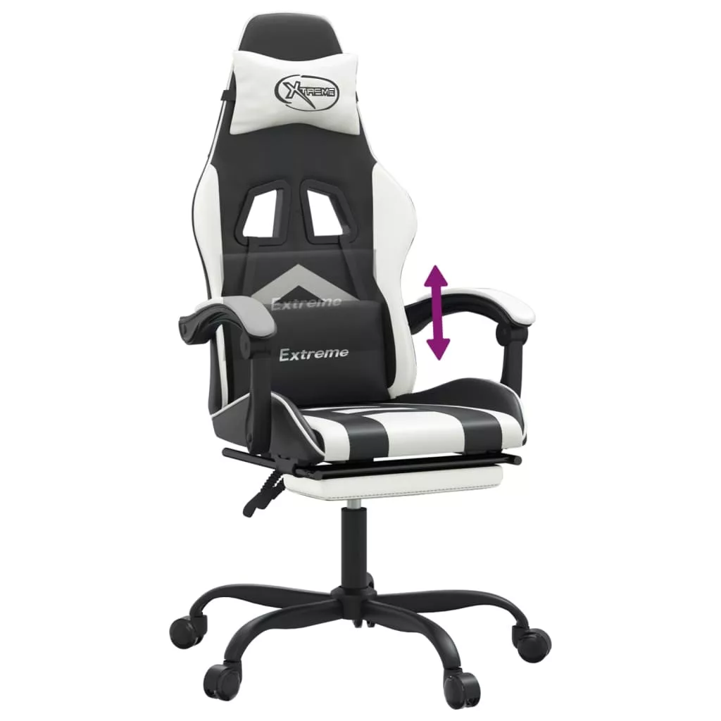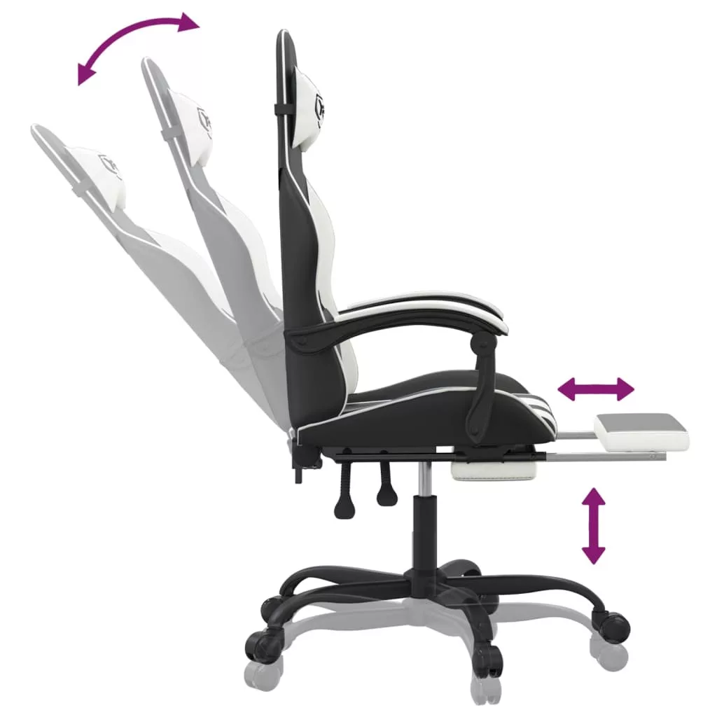 Üljön ezen az egyedülálló játékszéken és élvezze a kényelmes játékélményét! Tartós műbőr: A prémium minőségű műbőr rendkívül tartós anyag. Foltálló, így nedves ruhával könnyen tisztítható. A sima felület fényűző megjelenésű, és a valódi bőr szépségét biztosítja.Állítható háttámla és magasság: A fotel dönthető, így saját igénye szerint állíthatja be a háttámlát és a lábtartót. A kar segítségével tetszés szerint állíthatja be az ülés magasságát.Kényelmes kialakítás: A 360 fokban forgatható kivitel széles mozgástartományt biztosít. Ezenkívül a görgőkkel kényelmesen mozgatható.Masszív és stabil váz: A fémből és furnérlemezből készült vázak erős szerkezetet és stabilitást biztosítanak. Megjegyzés:Az egyszerű összeszerelés érdekében minden termékhez mellékelünk összeszerelési útmutatót.