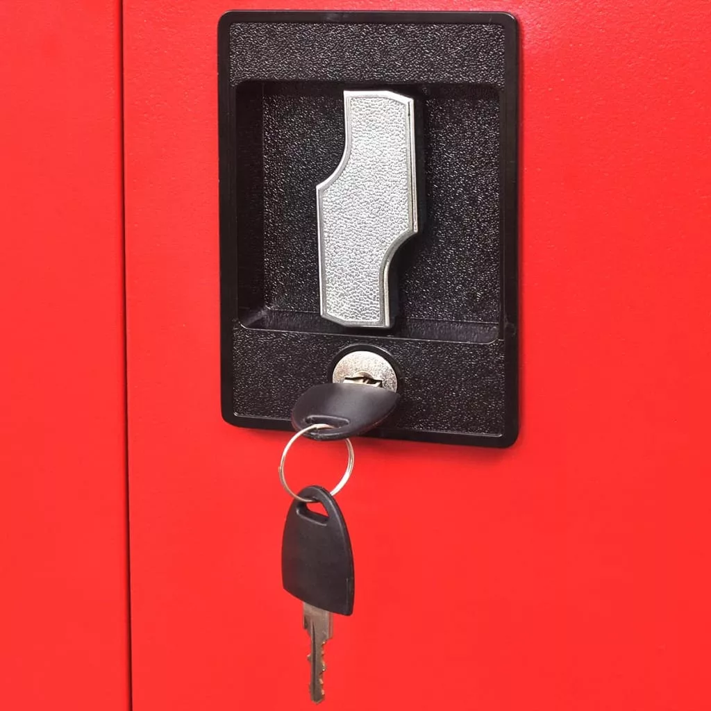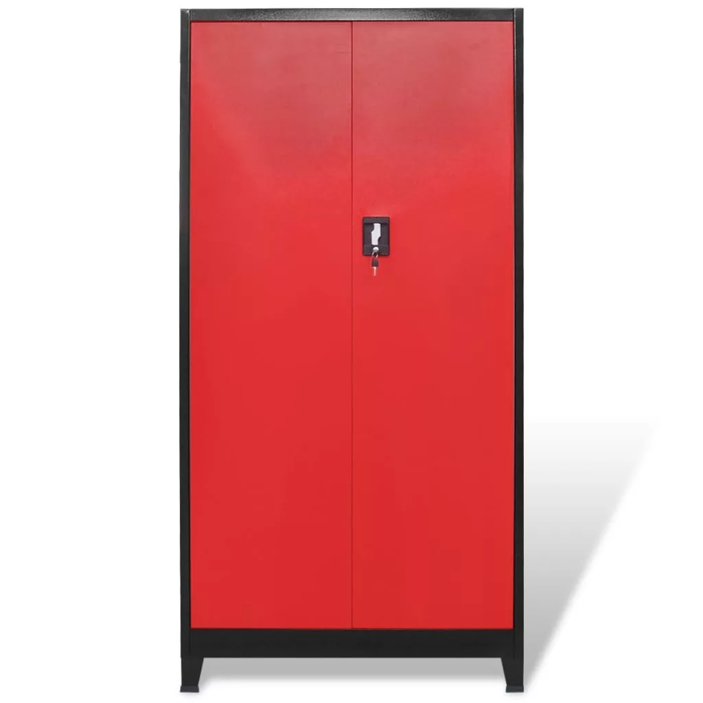 fekete és piros 2 ajtós acél szerszámos szekrény 90x40x180 cm