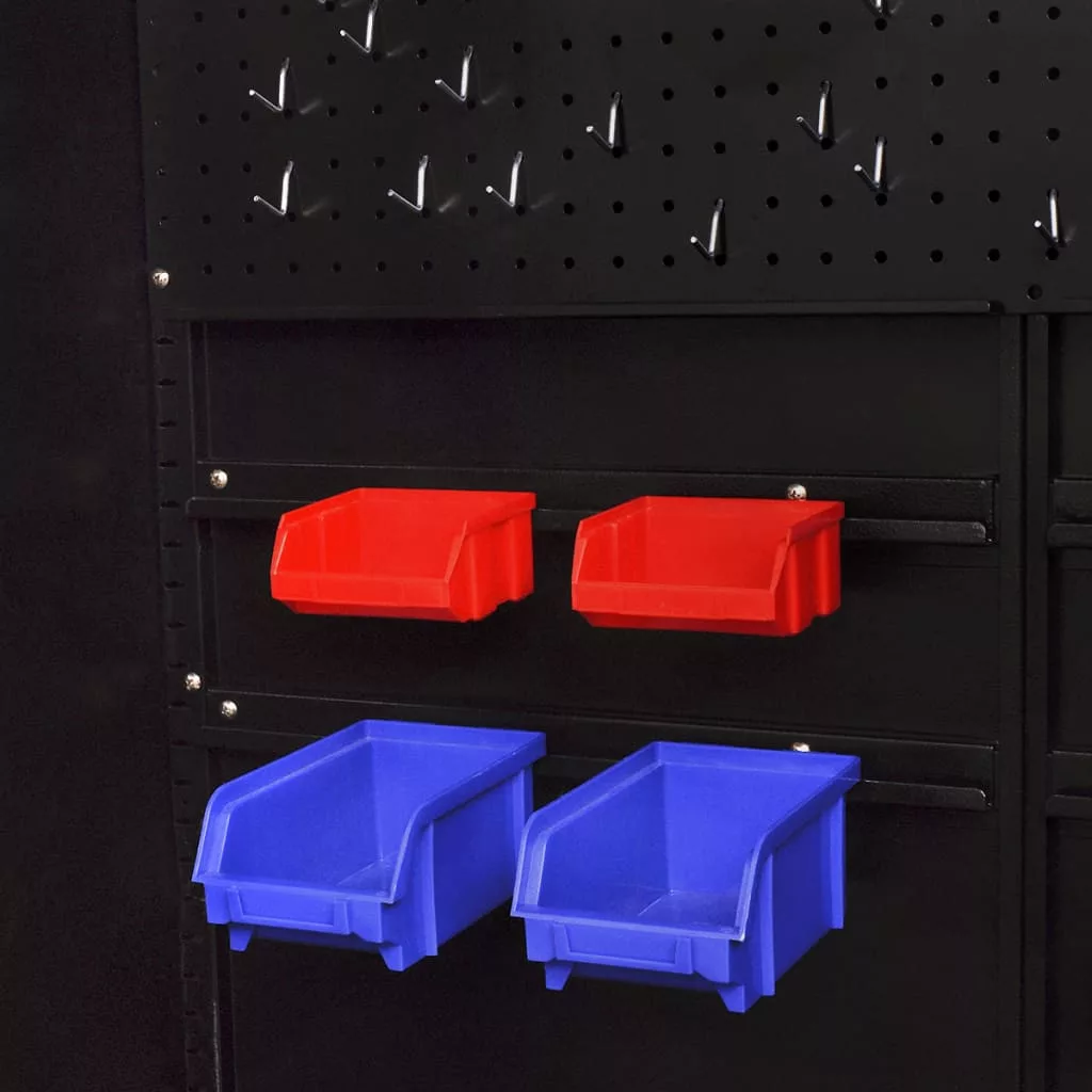 Ez a szerszámos szekrény ideális szerszámai tárolásához, de ikonikus, ipari stílusának köszönhetően akár egyedi dekoratív kiegészítője is lehet otthonának. Ez a szerszámos szekrény 2 beépített állvánnyal rendelkezik, ahová tárolórekeszek akaszthatóak (nem alaptartozék), valamint 3 levehető polccal, melyek maximum teherbírása egyenként 40 kg. Lyukakkal ellátott tábla is található benne, ahová különféle szerszámok, pl. csavarkulcsok, fogók, kalapácsok... stb. akaszthatók (szerszámok és a lyukkal ellátott tábla akasztói nem alaptartozékok). A műanyag talpak megakadályozzák, hogy megkarcolódjon a padló. Ez a szerszámtároló szekrény kiváló minőségű acélból készült és extra erős karcmentes bevonattal lett ellátva, így nemcsak rendkívül strapabíró és robusztus, de könnyen tisztítható és karbantartható is. Könnyen összeszerelhető. Ez a szerszámos szekrény szerszámos ládánkkal együtt is használható a tárolóhely megnövelése érdekében.