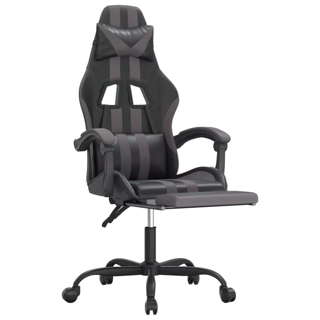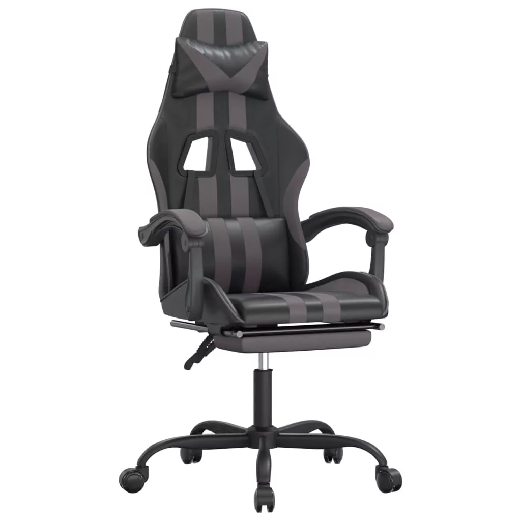 fekete és szürke műbőr forgó játékszék lábtartóval