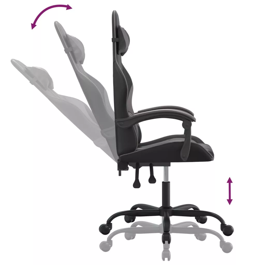 Üljön ezen az egyedülálló játékszéken és élvezze a kényelmes játékélményét! Tartós műbőr: A prémium minőségű műbőr rendkívül tartós anyag. Foltálló, így nedves ruhával könnyen tisztítható. A sima felület fényűző megjelenésű, és a valódi bőr szépségét biztosítja.Állítható háttámla és magasság: A fotel dönthető, így saját igénye szerint állíthatja be a háttámlát. A kar segítségével tetszés szerint állíthatja be az ülés magasságát.Kényelmes kialakítás: A 360 fokban forgatható kivitel széles mozgástartományt biztosít. Ezenkívül a görgőkkel kényelmesen mozgatható.Masszív és stabil váz: A fémből és furnérlemezből készült vázak erős szerkezetet és stabilitást biztosítanak. Megjegyzés:Az egyszerű összeszerelés érdekében minden termékhez mellékelünk összeszerelési útmutatót. Ügyeljen a nyílt tűz és más erős hőforrások veszélyére a termék közelében. Maximum 110 kg ülésenként. Ez a termék DC 5V-ról működik, de a tanúsított 5V-os USB-tápforrást nem tartalmazza. A magasabb feszültség túlmelegedést okozhat, ami a készülék károsodását, valamint a túlmelegedés és a tűz esetleges kockázatát okozhatja.