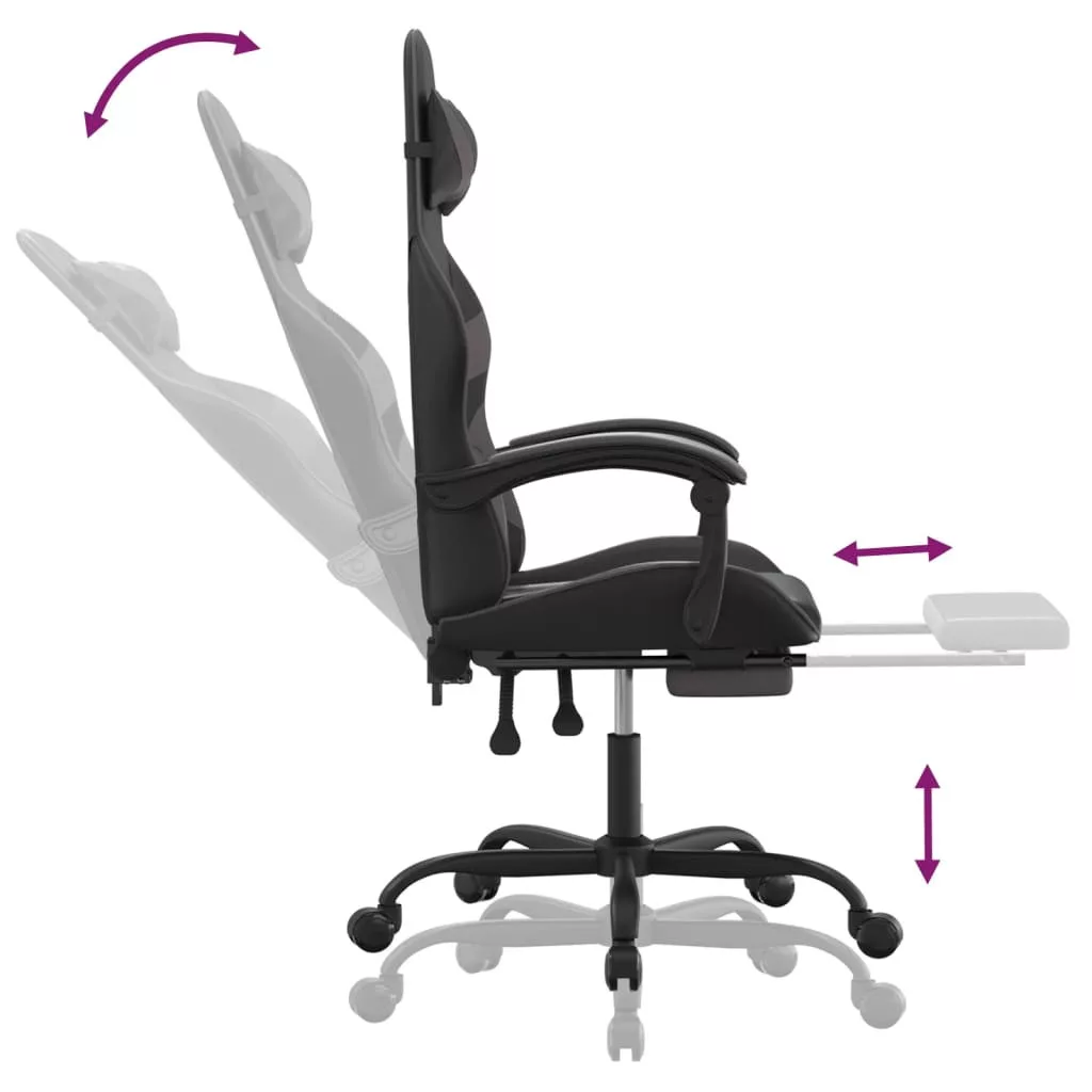 Üljön ezen az egyedülálló játékszéken és élvezze a kényelmes játékélményét! Tartós műbőr: A prémium minőségű műbőr rendkívül tartós anyag. Foltálló, így nedves ruhával könnyen tisztítható. A sima felület fényűző megjelenésű, és a valódi bőr szépségét biztosítja.Állítható háttámla és magasság: A fotel dönthető, így saját igénye szerint állíthatja be a háttámlát és a lábtartót. A kar segítségével tetszés szerint állíthatja be az ülés magasságát.Kényelmes kialakítás: A 360 fokban forgatható kivitel széles mozgástartományt biztosít. Ezenkívül a görgőkkel kényelmesen mozgatható.Masszív és stabil váz: A fémből és furnérlemezből készült vázak erős szerkezetet és stabilitást biztosítanak. Megjegyzés:Az egyszerű összeszerelés érdekében minden termékhez mellékelünk összeszerelési útmutatót. Ügyeljen a nyílt tűz és más erős hőforrások veszélyére a termék közelében. Maximum 110 kg ülésenként. Ez a termék DC 5V-ról működik, de a tanúsított 5V-os USB-tápforrást nem tartalmazza. A magasabb feszültség túlmelegedést okozhat, ami a készülék károsodását, valamint a túlmelegedés és a tűz esetleges kockázatát okozhatja.