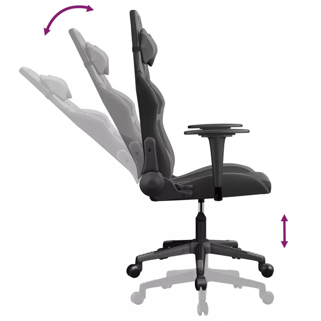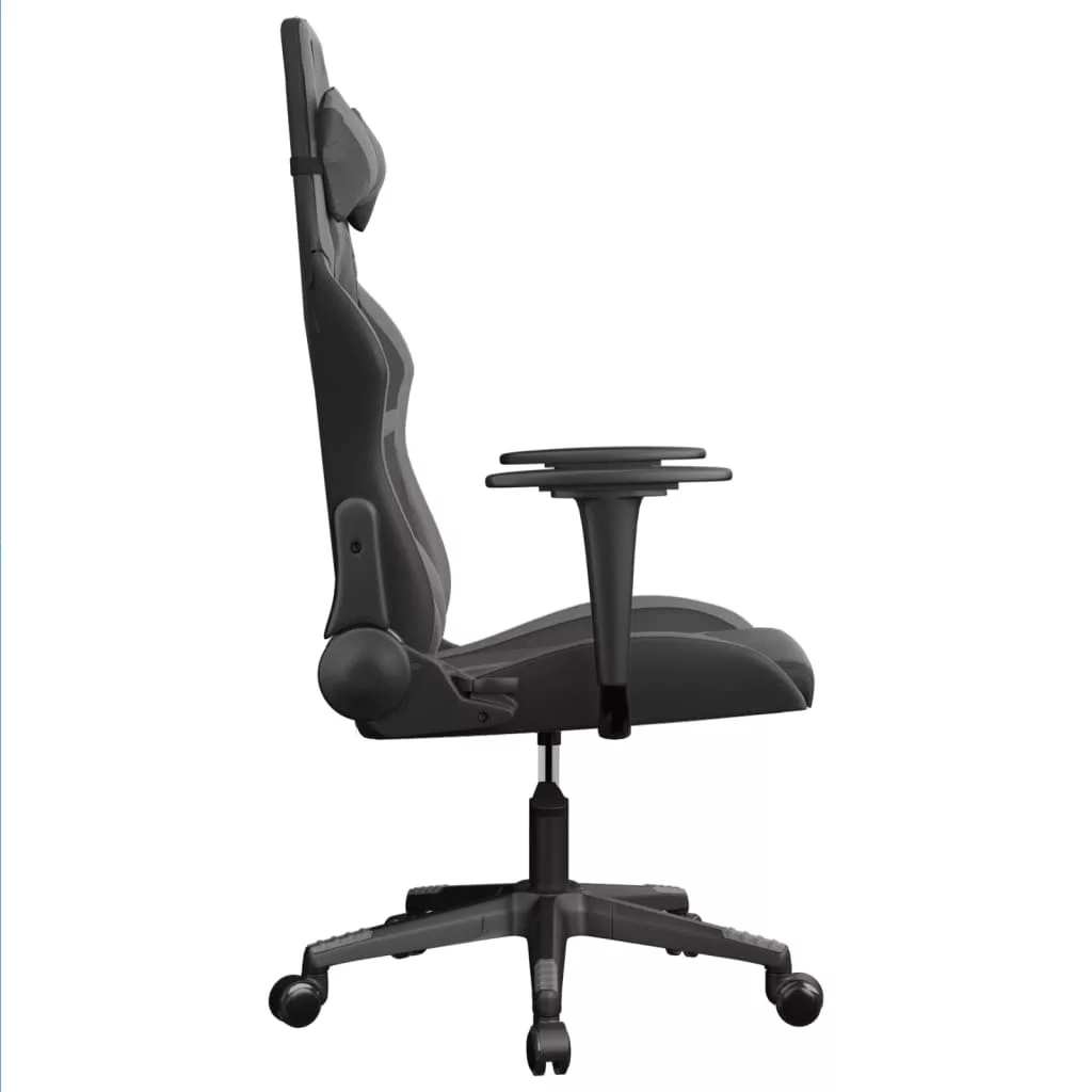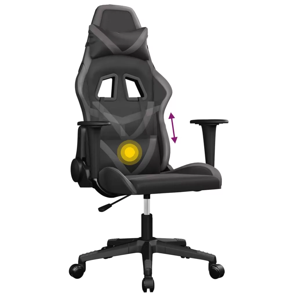 Üljön ezen az egyedülálló játékszéken és élvezze a kényelmes játékélményét! Tartós műbőr: A prémium minőségű műbőr rendkívül tartós anyag. Foltálló, így nedves ruhával könnyen tisztítható. A sima felület fényűző megjelenésű, és a valódi bőr szépségét biztosítja.Masszázs funkció: A derékpárnában található masszázspont hatékonyan enyhíti a fáradtságot, és ellazítja a munkahelyen.Állítható magasság: A kar segítségével tetszés szerint állíthatja az ülés magasságát.Kényelmes kialakítás: A 360 fokban forgatható kivitel széles mozgástartományt biztosít. Ezenkívül a görgőkkel kényelmesen mozgatható. Élvezze a maximális kényelmet az állítható háttámla legoptimálisabb pozíciójának és szögének beállításával.Masszív és stabil váz: A fémből és furnérlemezből készült vázak erős szerkezetet és stabilitást biztosítanak. Jó tudni:A termék USB-csatlakozóval rendelkezik, amelyhez hitelesített, 5 V-os USB áramforrás szükséges (nem alaptartozék). Ügyeljen a nyílt tűz és más erős hőforrások veszélyére a termék közelében. Maximum 110 kg ülésenként. Ez a termék DC 5V-ról működik, de a tanúsított 5V-os USB-tápforrást nem tartalmazza. A magasabb feszültség túlmelegedést okozhat, ami a készülék károsodását, valamint a túlmelegedés és a tűz esetleges kockázatát okozhatja.