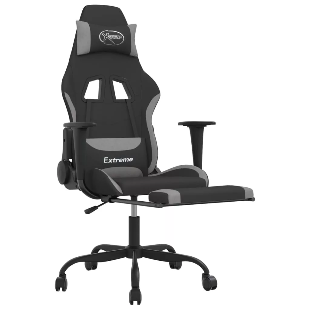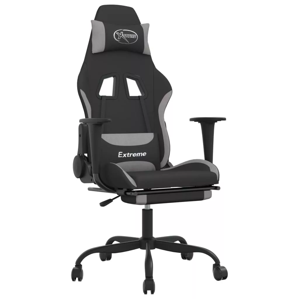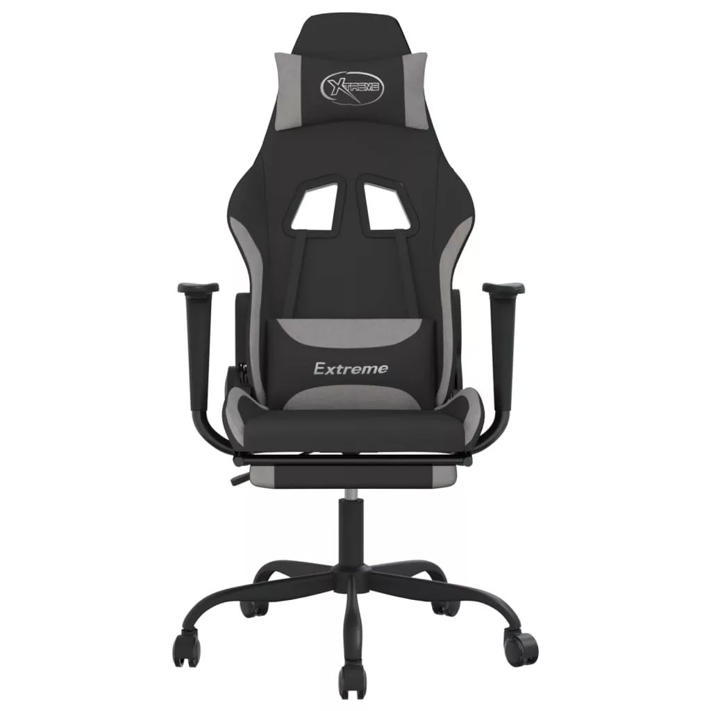 fekete és világosszürke szövet masszázs játékszék lábtartóval