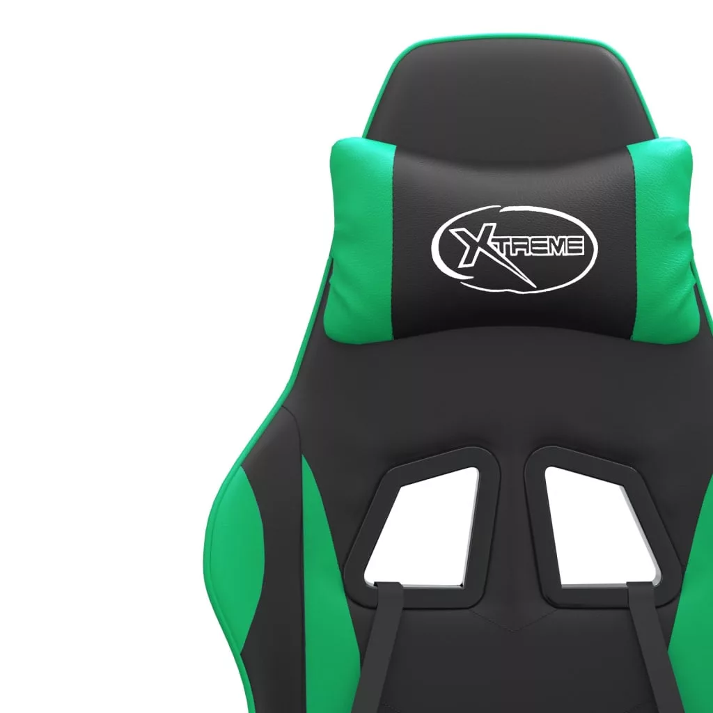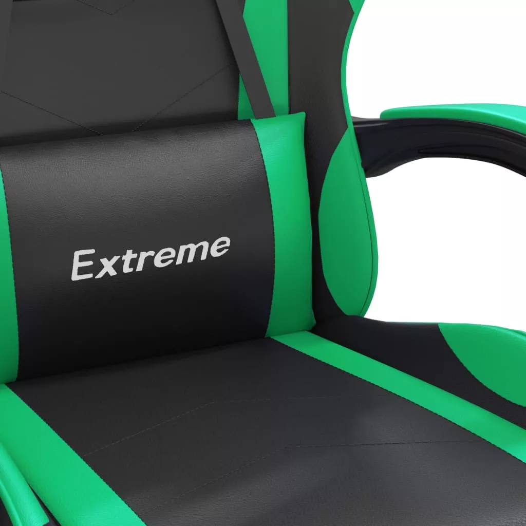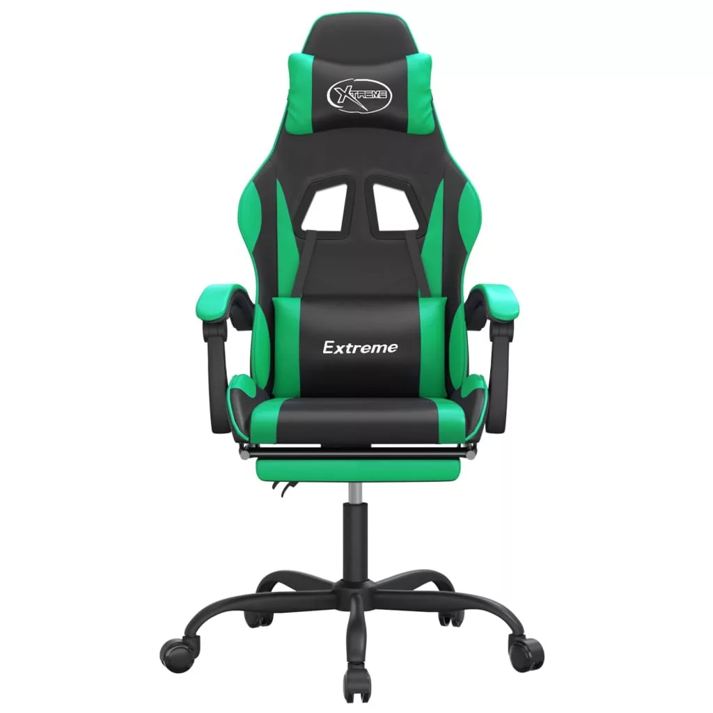 fekete és zöld műbőr forgó játékszék lábtartóval
