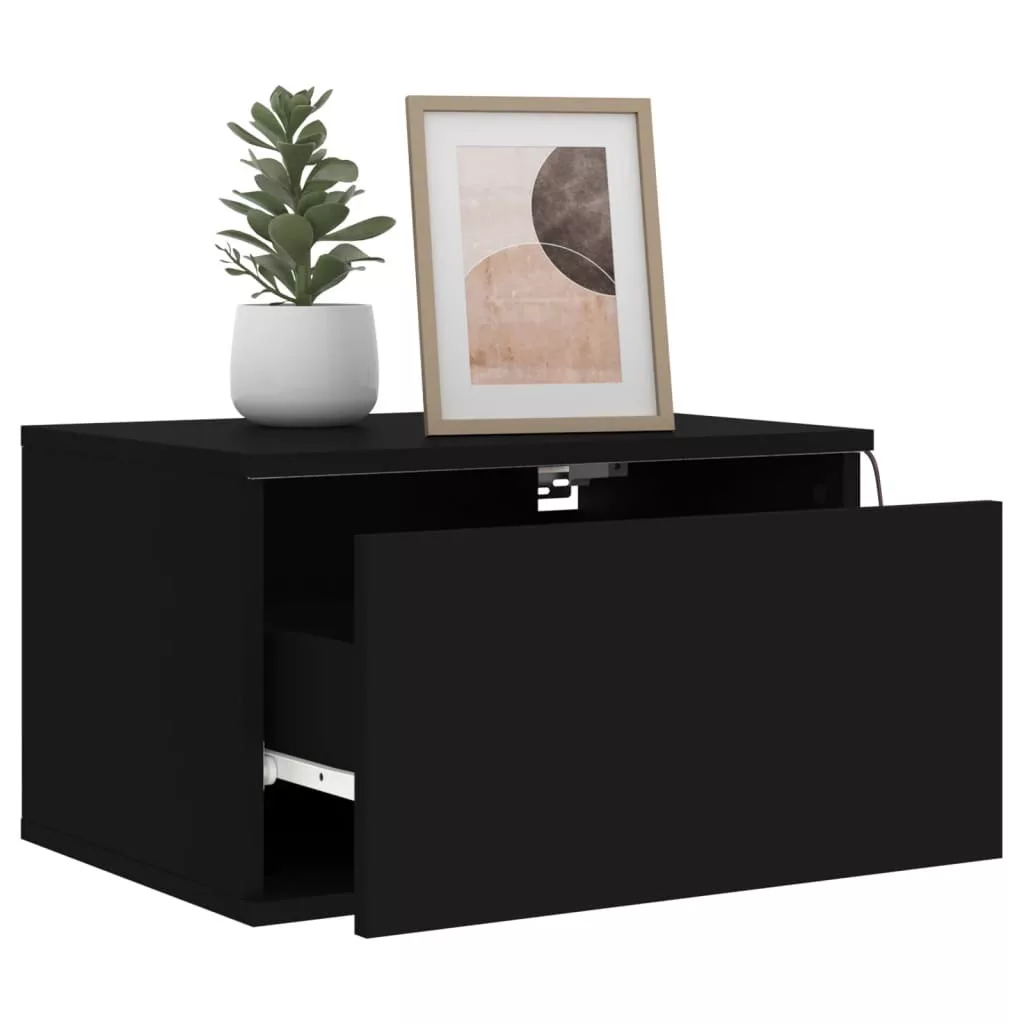 fekete falra szerelhető éjjeliszekrény LED fényekkel