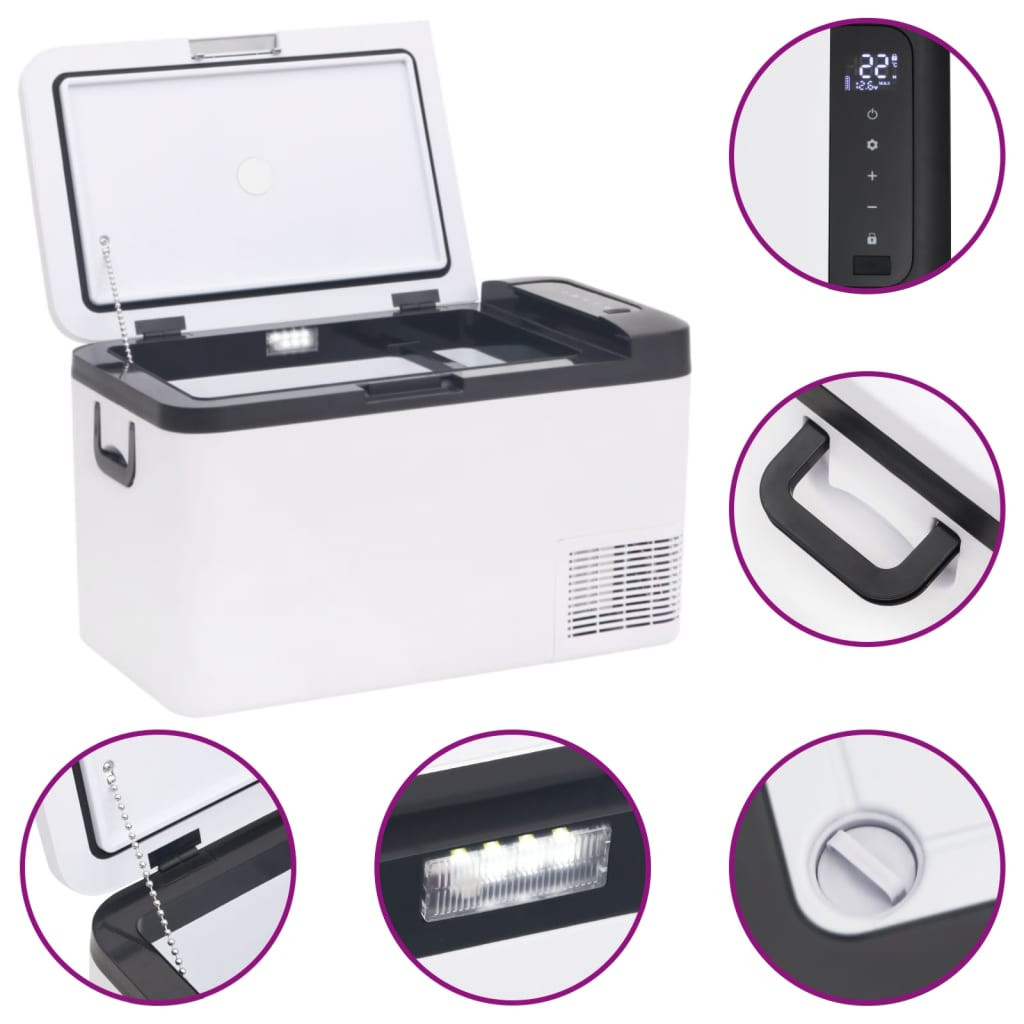 Ezzel a hordozható hűtőládával mindig friss élelmiszerekhez és hideg italokhoz juthat bármilyen szabadtéri tevékenység közben, akár rövidebb, akár hosszabb utakra indul. Nagy tárolókapacitás: A hűtőládában van egy hűtőzóna, amely bőséges tárolóhelyet biztosít az italok, gyümölcsök, zöldségek és hús tárolására.Hatékony hűtés: Az elektromos hűtőláda erős kompresszorral lett felszerelve, amely gyorsan képes lehűlni. A hőszigetelés hosszú ideig tartó hűtést biztosít, ezáltal megőrizve az élelmiszer frissességét és finom ízét.Kettős üzemmód: Igényeitől függően az autós hűtőláda 2 különböző üzemmódra állítható be: Max és ECO. A hűtőrendszer a beállított hőmérséklet elérésekor leáll, majd újraindul, ha a láda hőmérséklete néhány fokkal megemelkedett.Az autó akkumulátorának védelme: A hőmérséklettárolási funkció és az akkumulátorvédő rendszer segítségével a hűtőláda képes megakadályozni, hogy a gépjármű akkumulátora lemerüljön.Rezgésgátló funkció: A rezgésgátló kialakítás és a megbízható tömítés megfelelően védetté teszi a kompresszoros hűtőszekrényt. Egyenetlen utakon is normálisan működik, szivárgás nélkül.Hordozható kialakítás: Az autó hűtőládája az oldalsó fogantyúnak köszönhetően bárhová könnyen mozgatható. Ideális berendezés fesztiválokhoz, kirándulásokhoz, piknikezéshez és kempingezéshez. Ezt a készüléket nem használhatják csökkent fizikai, érzékszervi vagy szellemi képességű, illetve tapasztalattal és tudással nem rendelkező személyek (beleértve a gyermekeket is), kivéve, ha a biztonságukért felelős személy felügyeli őket, vagy utasításokat kaptak a készülék használatára vonatkozóan. Ez a termék nem játék. Ne engedje, hogy gyerekek játsszanak a készülékkel.