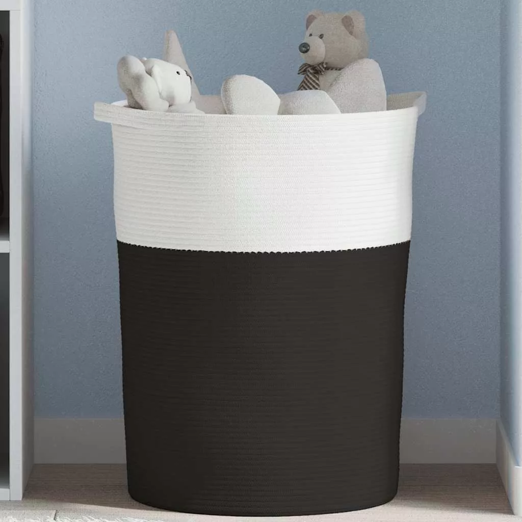 fekete-fehér pamut tárolókosár Ø49 x 65 cm