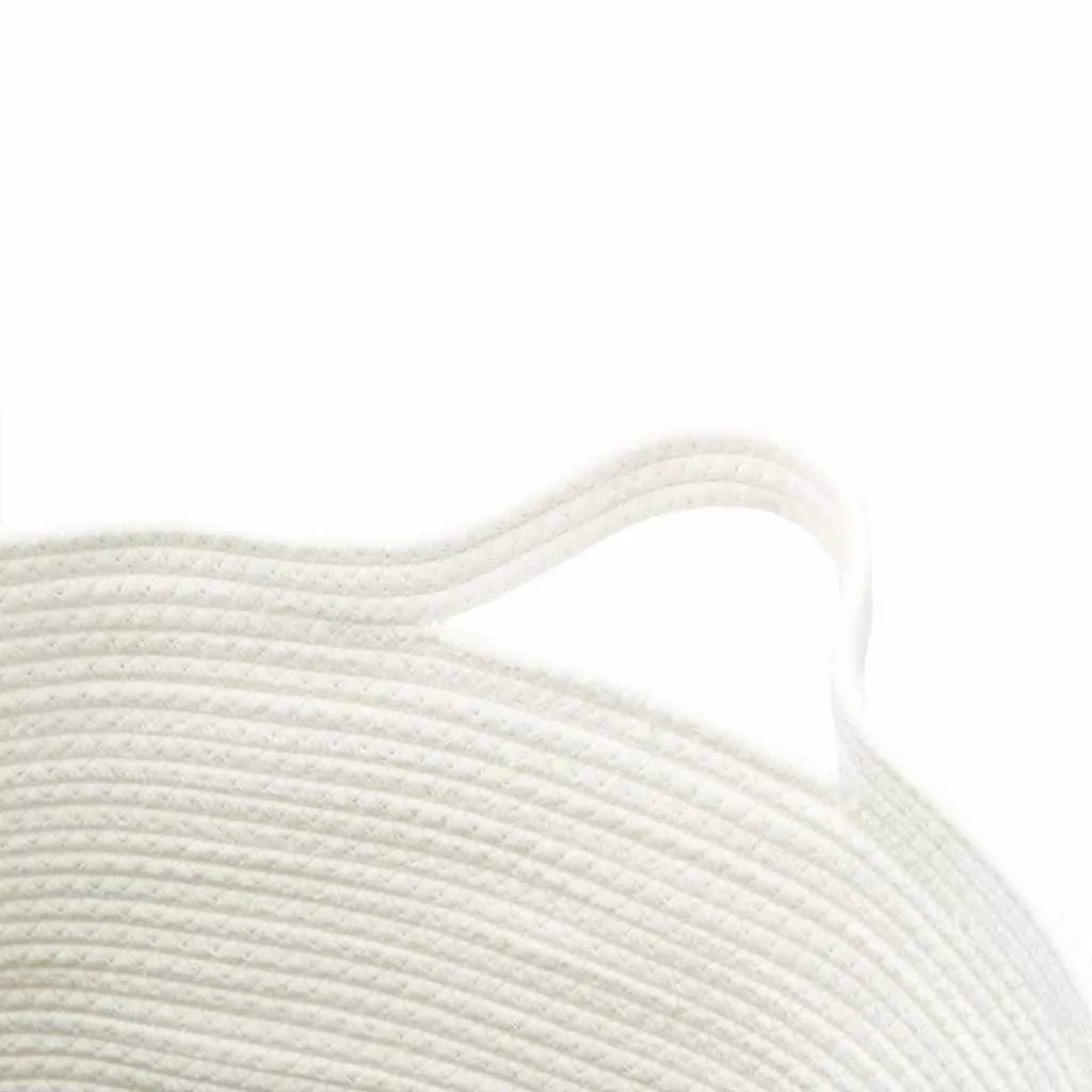 Ez a modern stílusú tárolókosár mindenkit lenyűgöz, és nem csupán praktikus, de igazán szemet gyönyörködtető is lesz bármely helyiségben. Tartós anyag: A kosár szőtt pamutkötelekből készült, amely egy légáteresztő, puha és kivételesen tartós anyag.Helytakarékos kialakítás: Az összecsukható kialakításnak köszönhetően használaton kívül könnyen tárolható, így az összecsukható tárolókosár ideális kis lakóterekbe.Egyszerű szállítás: A két erős fogantyúval ellátott takarótároló kosár kényelmes fogást és egyszerű szállítást biztosít.Sokoldalú kosarak: A dekoratív tárolókosár sokoldalú. Használható ruhák, törölközők, takarók, gyerekjátékok vagy egyéb otthoni holmik tárolására, elősegítve, hogy a környezet tiszta és rendezett maradjon. Jó tudni:Javasoljuk, hogy a kosár átvételekor tömje ki például párnákkal, hogy helyreálljon az alakja, vagy szükség esetén használjon vasalót a forma kialakításához.A kosár élettartamának meghosszabbítása érdekében kerülje a gépi mosást, mert alakját vesztheti. Ehelyett inkább óvatosan mossa ki kézzel a kosarat, ha szükséges.