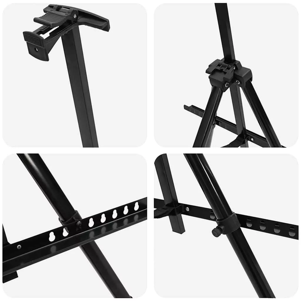 Mutassa be műtárgyait bájos fém festőállványunk segítségével! Stabil váz: Ez a festőállvány fémből készült. A csúszásmentes gumilábak nagyobb tapadást biztosítanak, így a festőállvány stabil. Állítható magasság: A festőállvány magassága igényei szerint szabadon állítható. Sokoldalú és kreatív felhasználás: A festőállvány ideális szakkiállításokhoz és mobil bemutatókhoz, fotókiállításokhoz, művészeti kiállításokhoz és egyebekhez.