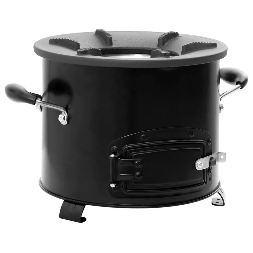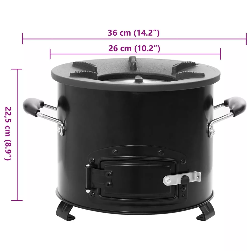 fekete fém fatüzelésű kempingtűzhely 36 x 26 x 22,5 cm