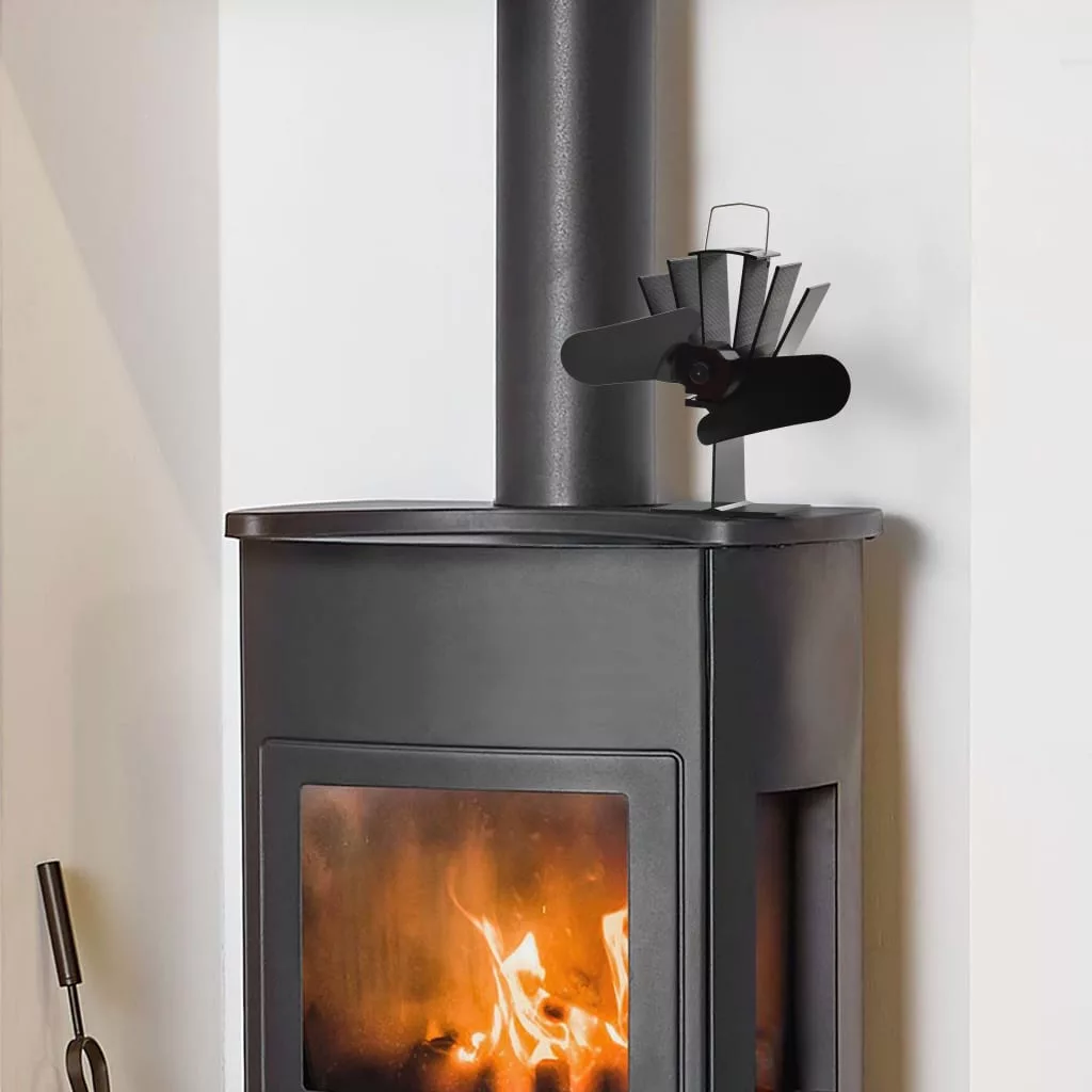 fekete hővel meghajtott kétlapátos kandalló ventilátor