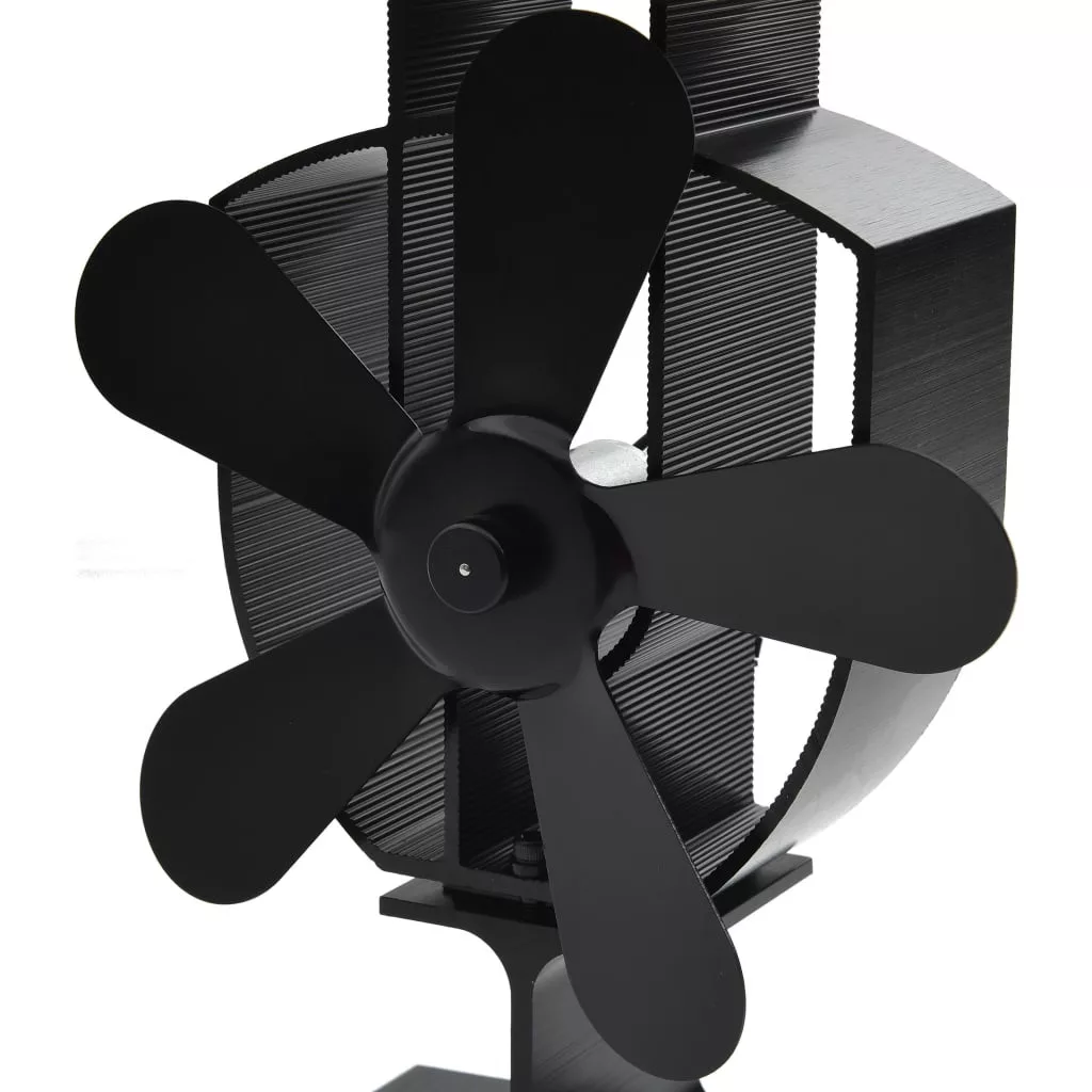 fekete hővel meghajtott ötlapátos kandalló ventilátor