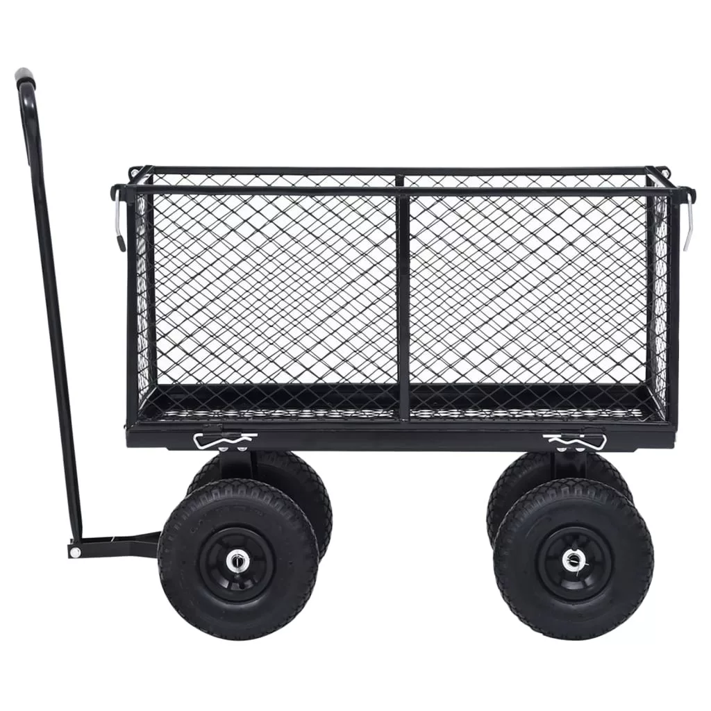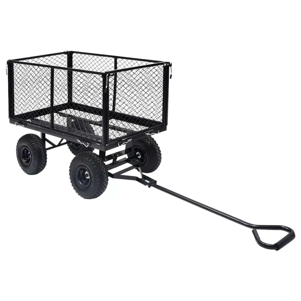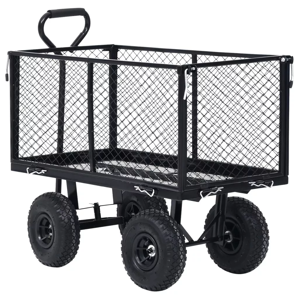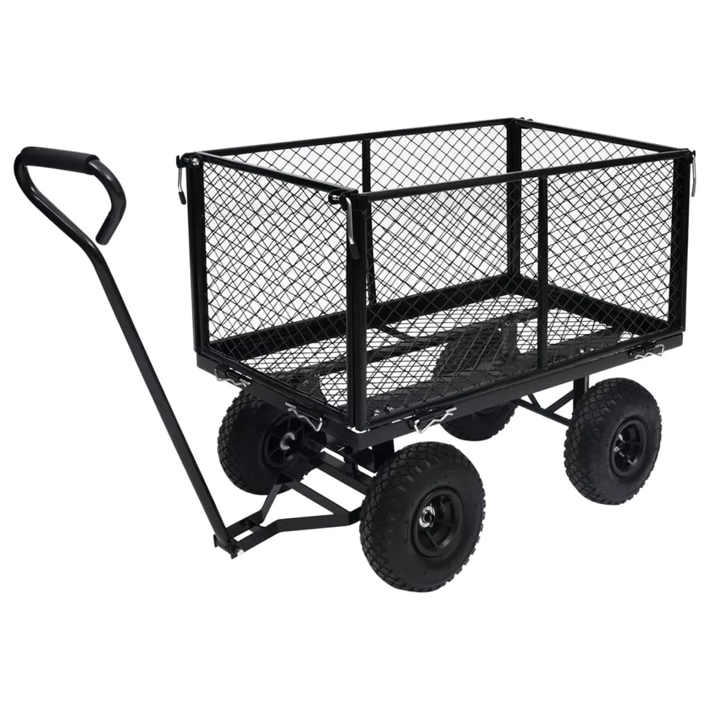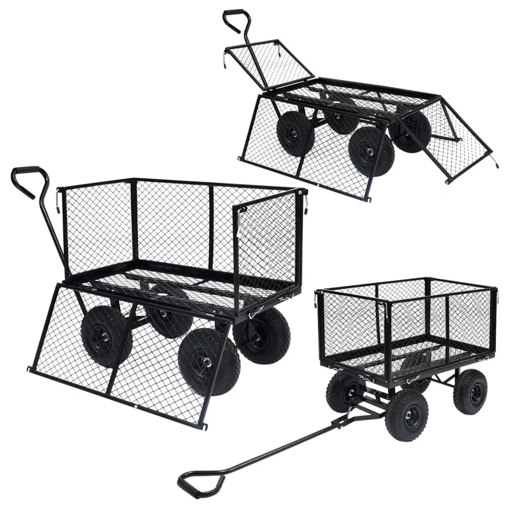 A tartós és robusztus acélszerkezettel rendelkező kézikocsi sokféle kertészeti feladathoz ideális. A nagy teherbírású acélból készült kerti kocsi rendkívül stabil és tartós. 350 kg teherbírásával a kézikocsival könnyen szállíthat virágot, leveleket, rönköket és egyebeket. Az egyszerű be- és kirakodás érdekében az oldalsó paneleket gyorskioldóval lehet kinyitni. Emellett a nagy teherbírású pneumatikus kerekeken a kocsi egyenetlen talajon is könnyedén húzható. A párnázott fogantyú megkönnyíti a szilárd fogást. Kérjük vegye figyelembe, hogy a termék gyermekek szállítására nem alkalmas. A szállítmány bélést nem tartalmaz a kerti kocsihoz; ez megvásárolható áruházunkban.