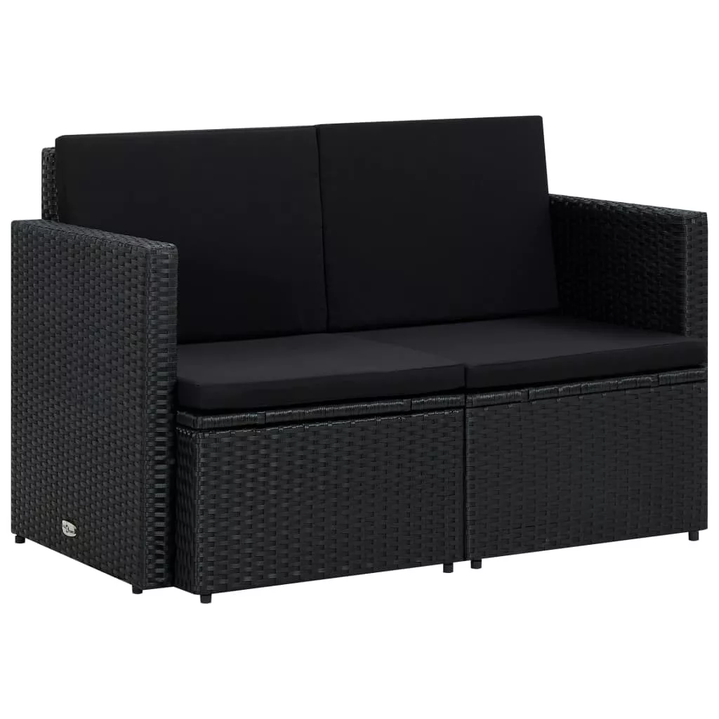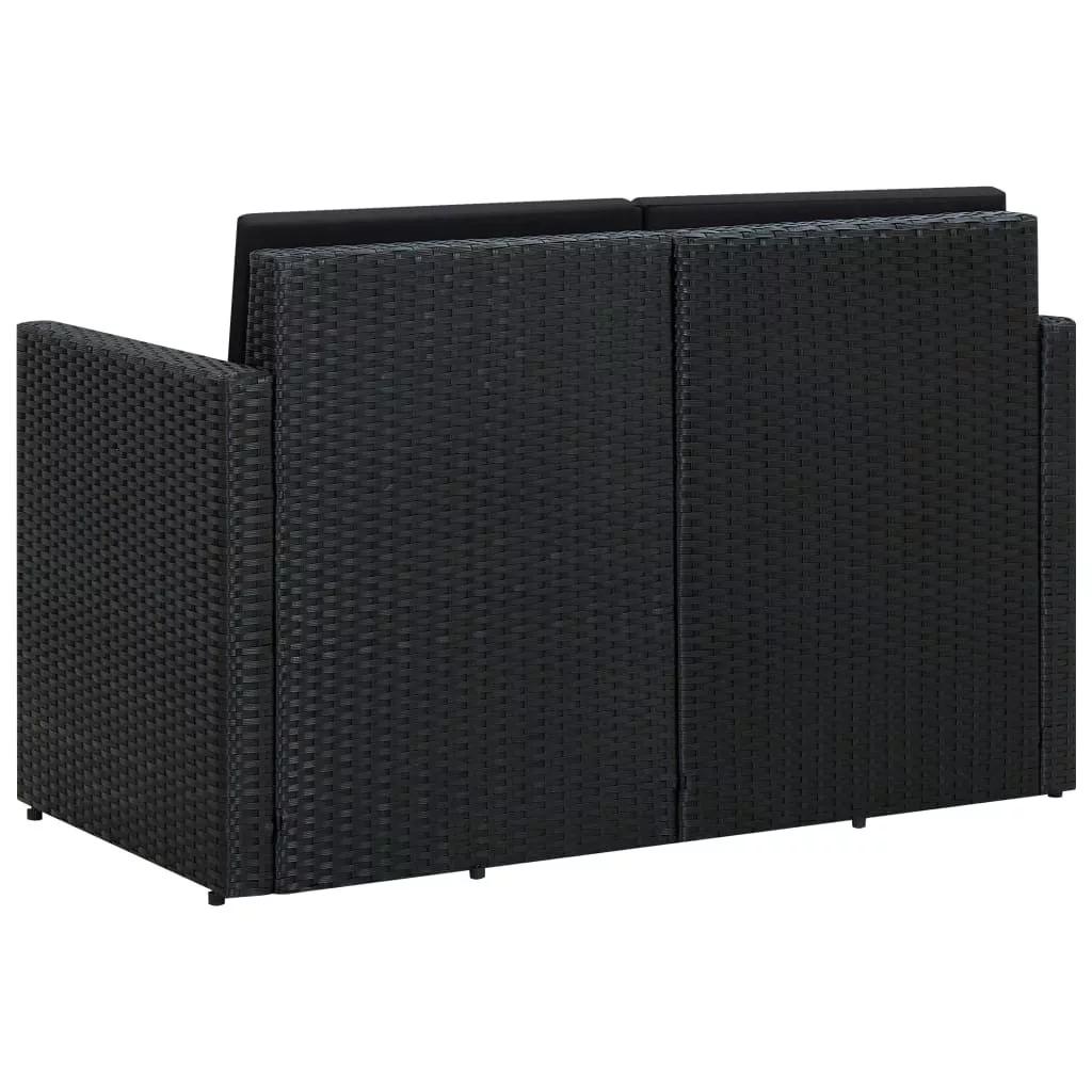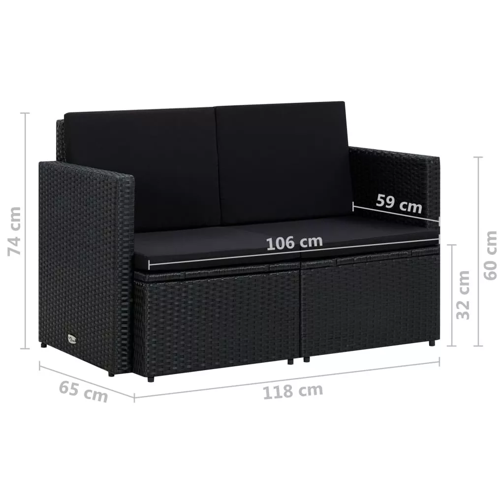 fekete kétszemélyes polyrattan kerti kanapé párnákkal