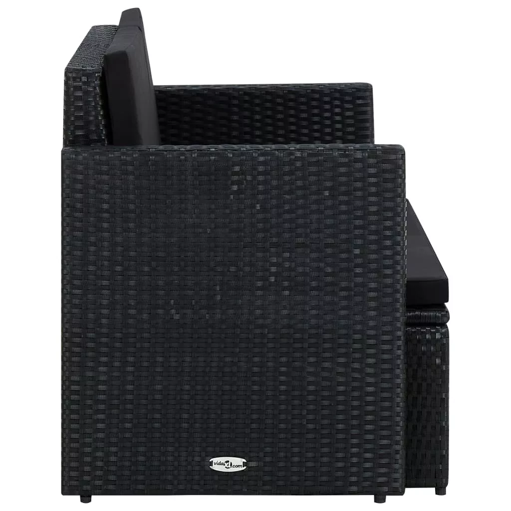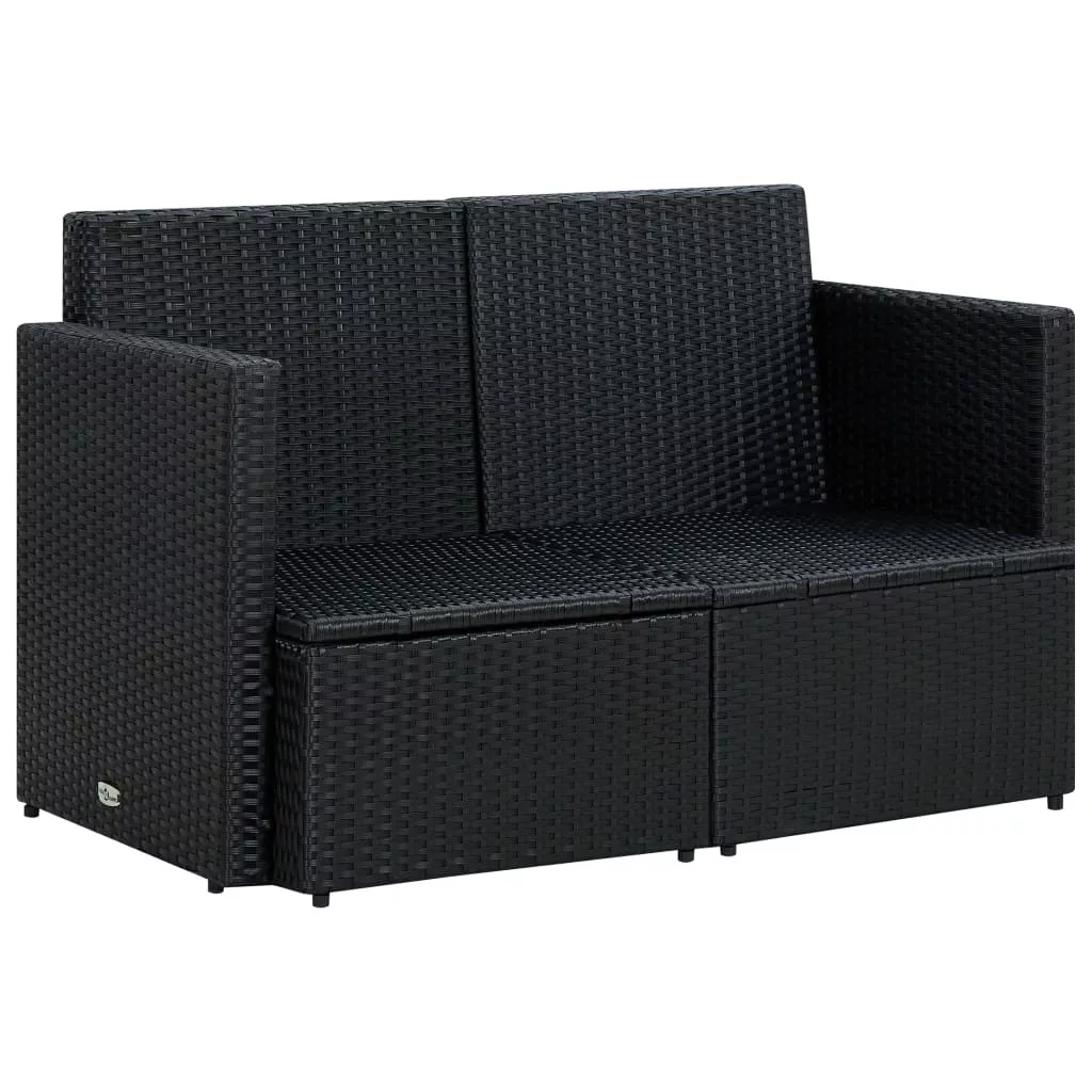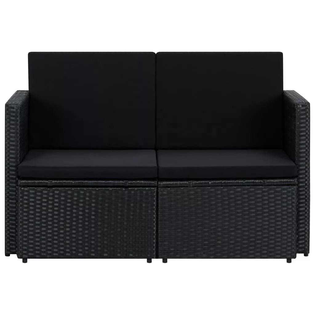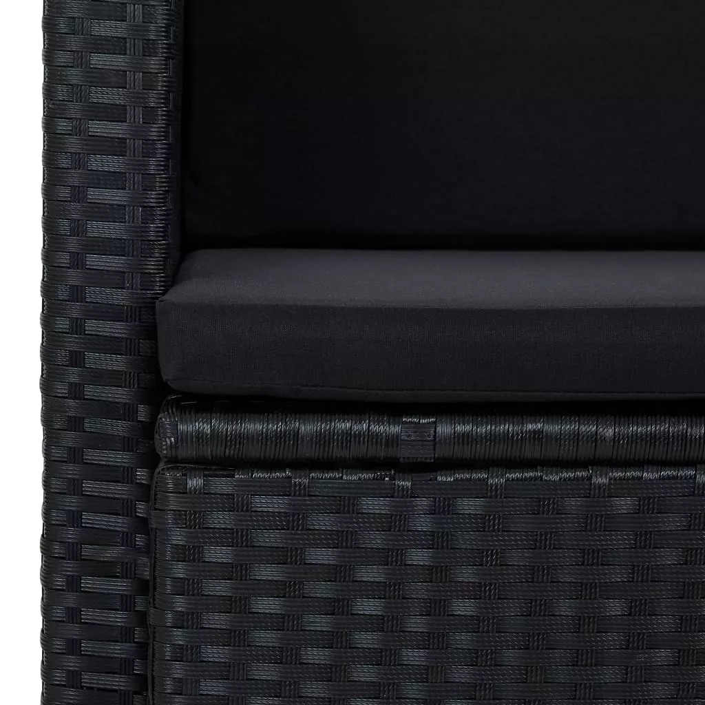 fekete kétszemélyes polyrattan kerti kanapé párnákkal