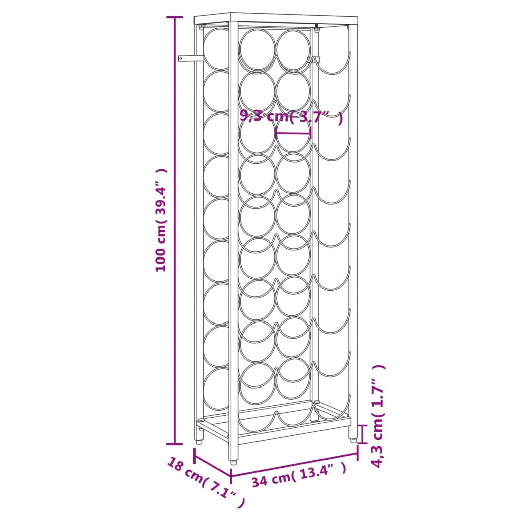 fekete kovácsoltvas bortartó 27 palackhoz 34 x 18 x 100 cm