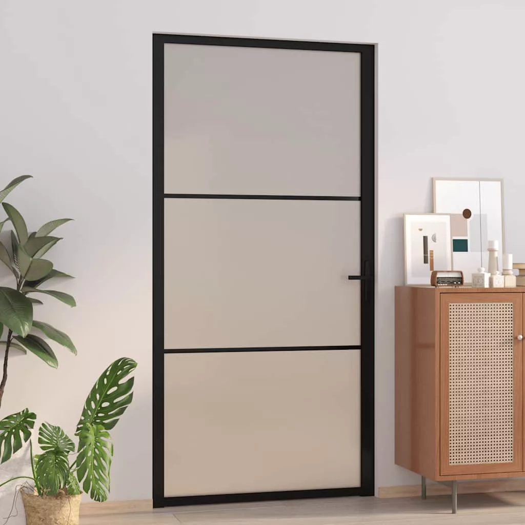 Teremtsen elegáns átmenetet két helyiség között ezzel a beltéri ajtóval! Erős anyag: Intelligens szerkezetének köszönhetően az edzett üveg erősebb és tartósabb, mint bármely más üveg. Az edzett üveg ellenáll a nagy ütéseknek, karcolásoknak stb.Stabil váz: Az alumíniumváz erős szerkezetet és stabilitást biztosít.Elegendő magánszféra: Az ajtópanel matt üvegből készült, amely nagymértékű magánszférát biztosít otthonában és irodájában.Modern dizájn: Az üvegajtó modern stílust kölcsönöz lakberendezésének. A modern kialakítás letisztult vonalakkal, minimalista megjelenéssel és természetes fénnyel járul hozzá környezetéhez. Megjegyzés:Ez a beltéri ajtó 35-50 mm-es ajtókeretbe szerelhető.Az egyszerű összeszerelés érdekében minden termékhez mellékelünk összeszerelési útmutatót.