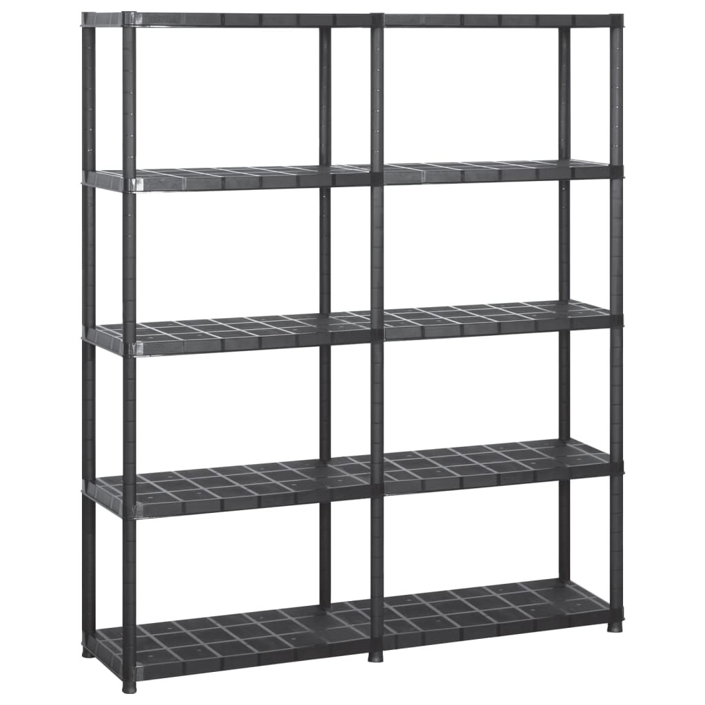 fekete műanyag 5 szintes tárolópolc 142 x 38 x 170 cm