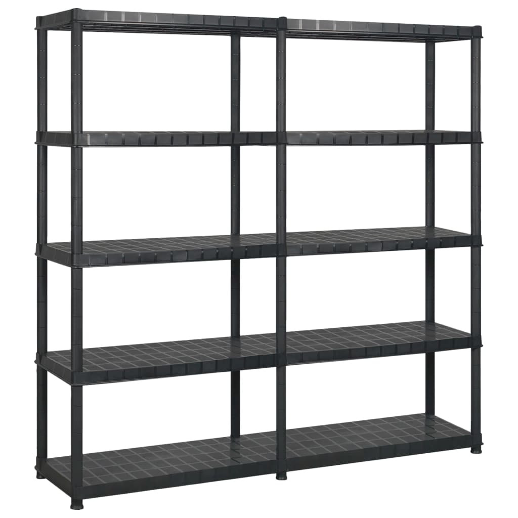 fekete műanyag 5 szintes tárolópolc 170 x 40 x 185 cm