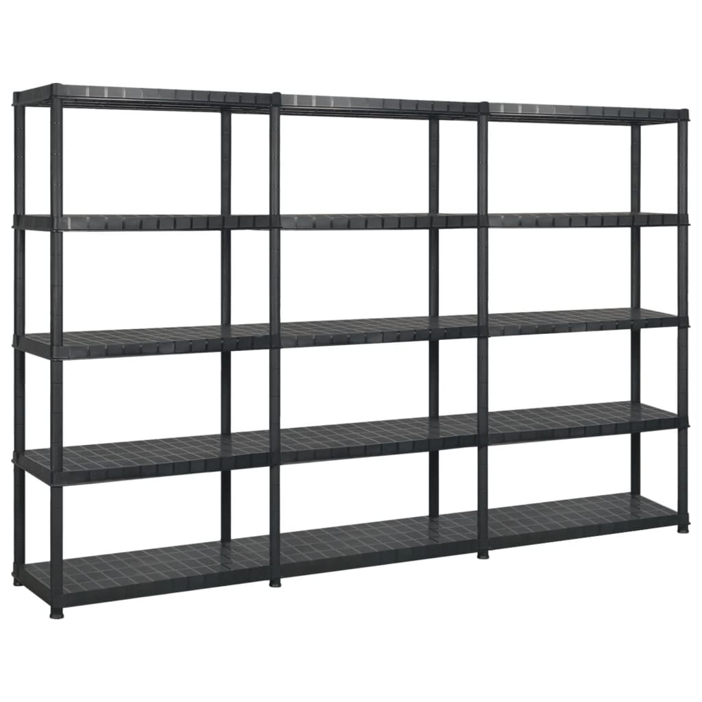 fekete műanyag 5 szintes tárolópolc 255 x 40 x 185 cm