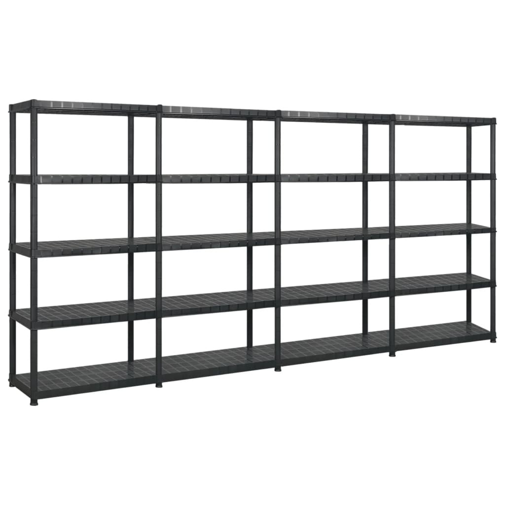 fekete műanyag 5 szintes tárolópolc 340 x 40 x 185 cm
