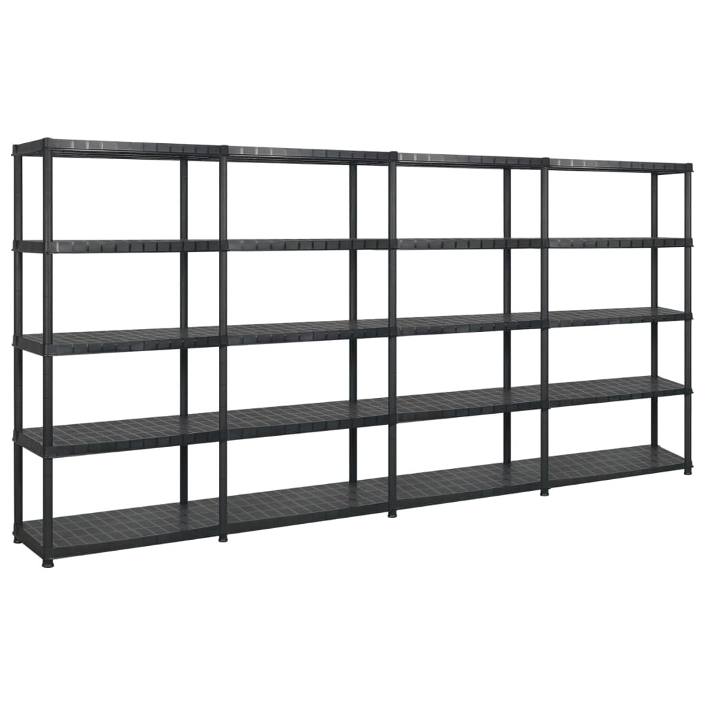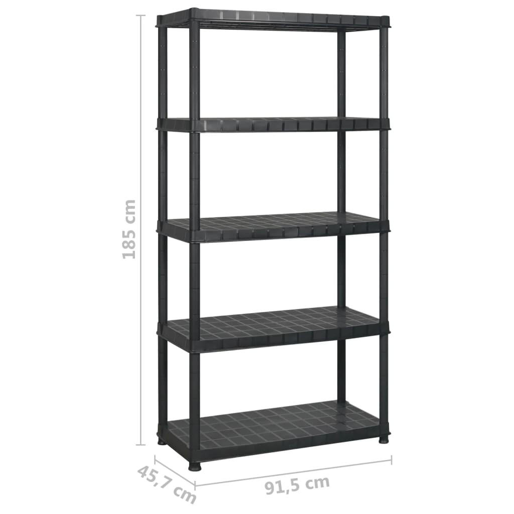 fekete műanyag 5 szintes tárolópolc 366 x 45,7 x 185 cm