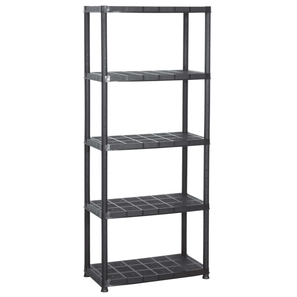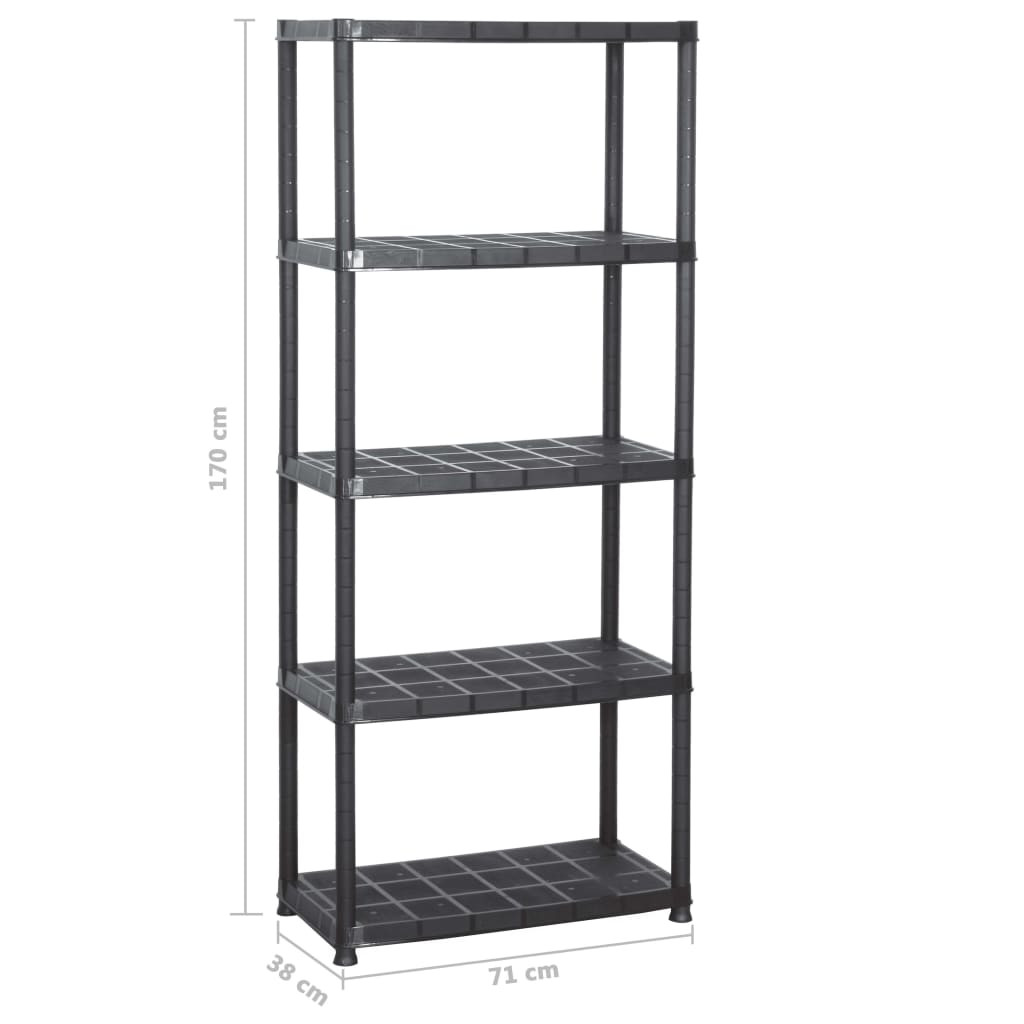 fekete műanyag 5 szintes tárolópolc 71 x 38 x 170 cm
