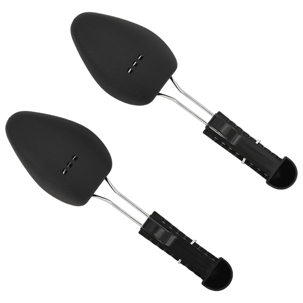 Ezek a cipő sámfák biztosítják, hogy cipője ne gyűrődjön, így a cipő megőrzi alakját még többszöri viselés után is. Rugalmas kialakítás: Ezek a cipőfák lyukakkal vannak kialakítva, hogy beállítsa a hosszukat. Csizmanyújtóként is használhatja őket, ha függőlegesen rögzíti ezt a fekete, lyukakkal ellátott fémvázat. Tartós anyagok: Erős vasból és tartós műanyagból készültek, ezek a cipőformázók tartósak, könnyűek és könnyen hordozhatók. Többfunkciós: A műanyag sámfa jó formában tartja cipőjét, megakadályozza a gyűrődéseket, horpadásokat és a kellemetlen szagokat, miközben tovább tart.