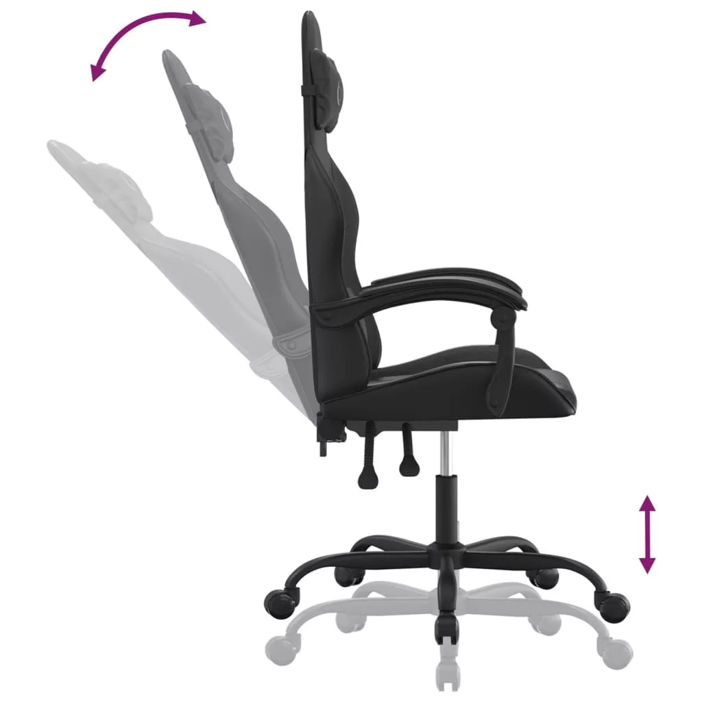 Üljön ezen az egyedülálló játékszéken és élvezze a kényelmes játékélményét! Tartós műbőr: A prémium minőségű műbőr rendkívül tartós anyag. Foltálló, így nedves ruhával könnyen tisztítható. A sima felület fényűző megjelenésű, és a valódi bőr szépségét biztosítja.Kényelmes párnák: Plusz párnákat tartalmaz a kényelem érdekében. Ezek a párnák jelentősen ellazítják a fejét és a derekát a széken ülve.Állítható háttámla és magasság: Élvezze a maximális kényelmet az állítható háttámla legoptimálisabb pozíciójának és szögének beállításával. A kar segítségével tetszés szerint állíthatja be az ülés magasságát.Kényelmes kialakítás: A 360 fokban forgatható kivitel széles mozgástartományt biztosít. Ezenkívül a görgőkkel kényelmesen mozgatható.Masszív váz: A fémből és furnérlemezből készült váz erős szerkezetet és stabilitást biztosít. Megjegyzés:Az egyszerű összeszerelés érdekében minden termékhez mellékelünk összeszerelési útmutatót.A termék USB-csatlakozóval rendelkezik, ám a hitelesített 5 V-os USB áramforrást a csomag nem tartalmazza. Ügyeljen a nyílt tűz és más erős hőforrások veszélyére a termék közelében. Maximum 110 kg ülésenként. Ez a termék DC 5V-ról működik, de a tanúsított 5V-os USB-tápforrást nem tartalmazza. A magasabb feszültség túlmelegedést okozhat, ami a készülék károsodását, valamint a túlmelegedés és a tűz esetleges kockázatát okozhatja.