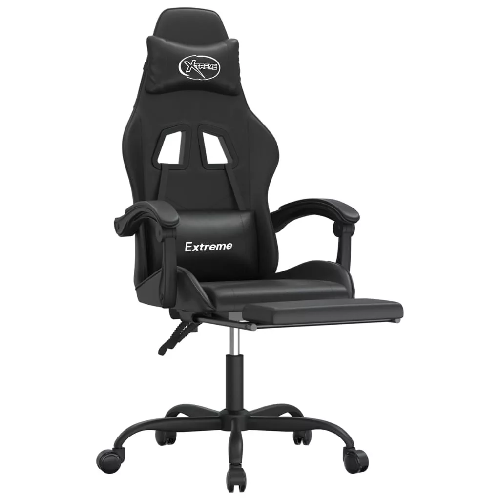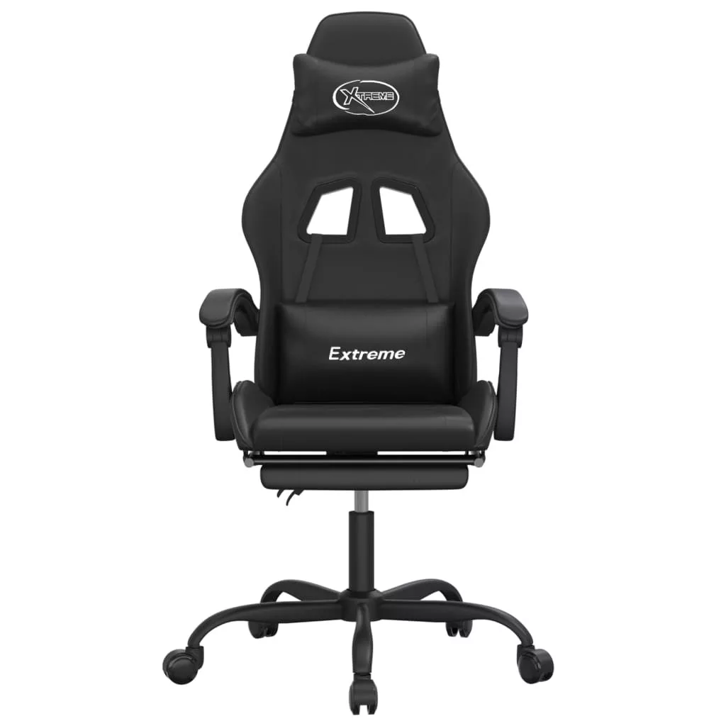 fekete műbőr forgó játékszék lábtartóval