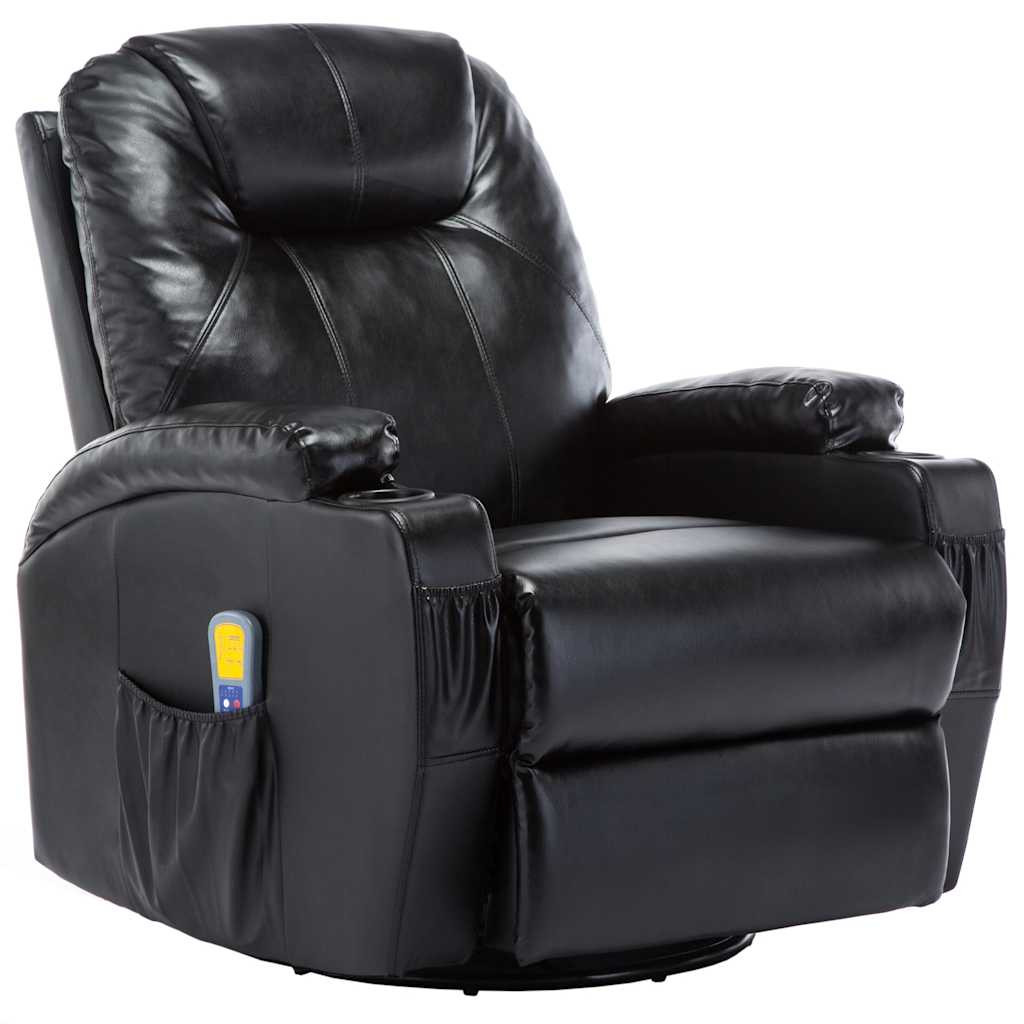 Ez a kiváló minőségű elektromos hintázó masszázsfotel tökéletes megoldás a teljes ellazulásra egy mozgalmas munkanap végén. A prémium műbőrrel kárpitozott, vastagon párnázott ülőfelülettel és háttámlával ezt a forgatható fekvőtámlát úgy tervezték, hogy maximális kényelmet nyújtson. A TV-fotel forgatható rendszerrel rendelkezik, amely 360°-os kilátást biztosít. A masszírozó hintafotel 8 masszázsponttal rendelkezik, amelyek megnyugtatják az egész testet. A fűtési funkciónak köszönhetően a dönthető fotel kényelmes meleget bocsát ki, ami segít enyhíteni a feszültséget. A háttámla és a lábtámasz az Ön igényei szerint különböző szögekbe állítható. A hozzátartozó távirányító a masszázsfotel oldalzsebébe csúsztatható. Az elektromos masszázsfotel könnyen összeszerelhető. Megjegyzés: A termék USB-csatlakozóval rendelkezik, ám a hitelesített 5 V-os USB áramforrást a csomag nem tartalmazza. Maximum 110 kg ülésenként. Ügyeljen a nyílt tűz és más erős hőforrások veszélyére a termék közelében.