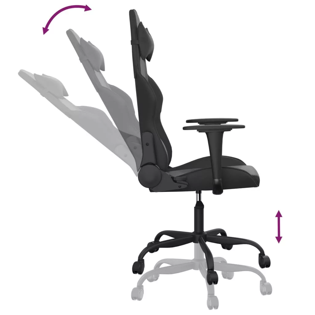 Üljön ezen az egyedülálló játékszéken és élvezze a kényelmes játékélményét! Tartós műbőr: A prémium minőségű műbőr rendkívül tartós anyag. Foltálló, így nedves ruhával könnyen tisztítható. A sima felület fényűző megjelenésű, és a valódi bőr szépségét biztosítja.Állítható háttámla és magasság: A fotel dönthető, így saját igénye szerint állíthatja be a háttámlát. A kar segítségével tetszés szerint állíthatja be az ülés magasságát.Kényelmes kialakítás: A 360 fokban forgatható kivitel széles mozgástartományt biztosít. Ezenkívül a görgőkkel kényelmesen mozgatható.Masszív és stabil váz: A fémből és furnérlemezből készült vázak erős szerkezetet és stabilitást biztosítanak. Megjegyzés:Az egyszerű összeszerelés érdekében minden termékhez mellékelünk összeszerelési útmutatót. Ügyeljen a nyílt tűz és más erős hőforrások veszélyére a termék közelében. Maximum 110 kg ülésenként. Ez a termék DC 5V-ról működik, de a tanúsított 5V-os USB-tápforrást nem tartalmazza. A magasabb feszültség túlmelegedést okozhat, ami a készülék károsodását, valamint a túlmelegedés és a tűz esetleges kockázatát okozhatja.