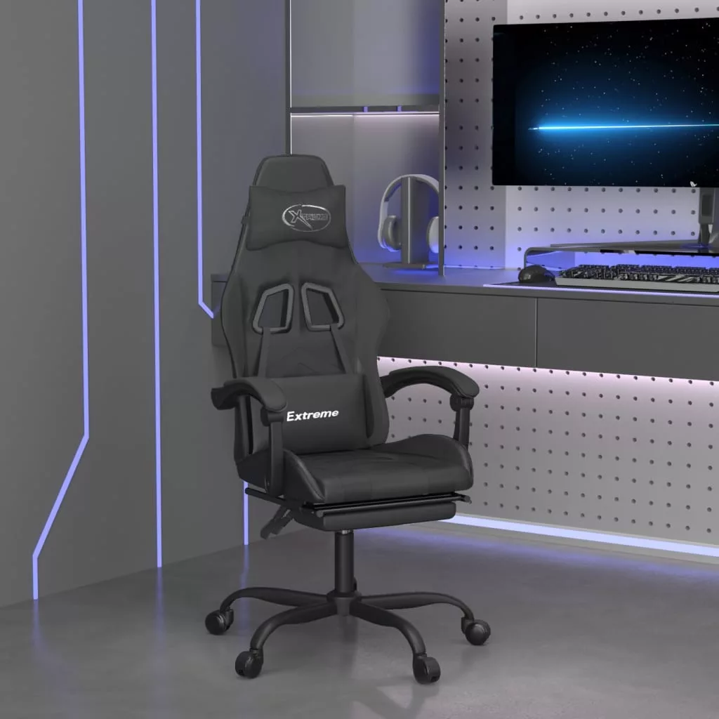 Üljön ezen az egyedülálló játékszéken és élvezze a kényelmes játékélményét! Tartós műbőr: A prémium minőségű műbőr rendkívül tartós anyag. Foltálló, így nedves ruhával könnyen tisztítható. A sima felület fényűző megjelenésű, és a valódi bőr szépségét biztosítja.Állítható háttámla és magasság: A fotel dönthető, így saját igénye szerint állíthatja be a háttámlát és a lábtartót. A kar segítségével tetszés szerint állíthatja be az ülés magasságát.Kényelmes kialakítás: A 360 fokban forgatható kivitel széles mozgástartományt biztosít. Ezenkívül a görgőkkel kényelmesen mozgatható.Masszív és stabil váz: A fémből és furnérlemezből készült vázak erős szerkezetet és stabilitást biztosítanak. Megjegyzés:Az egyszerű összeszerelés érdekében minden termékhez mellékelünk összeszerelési útmutatót.
