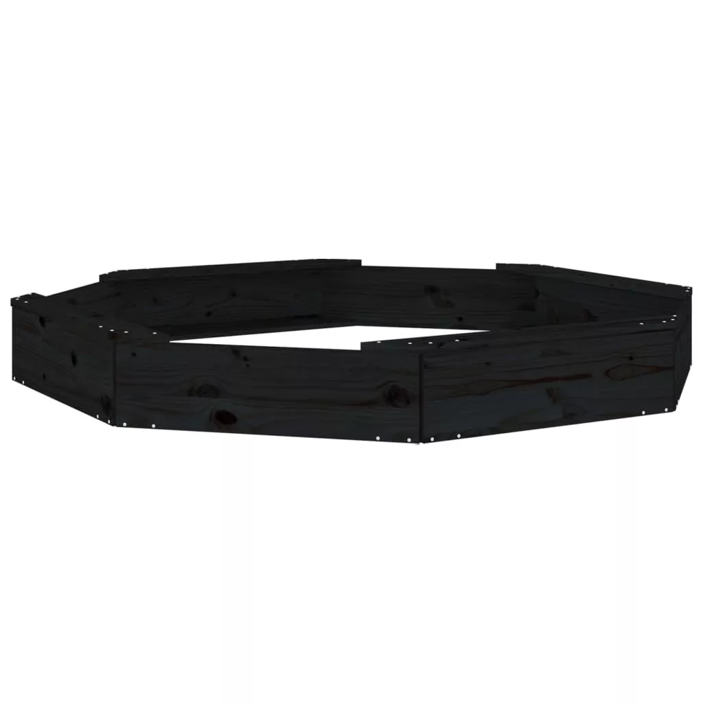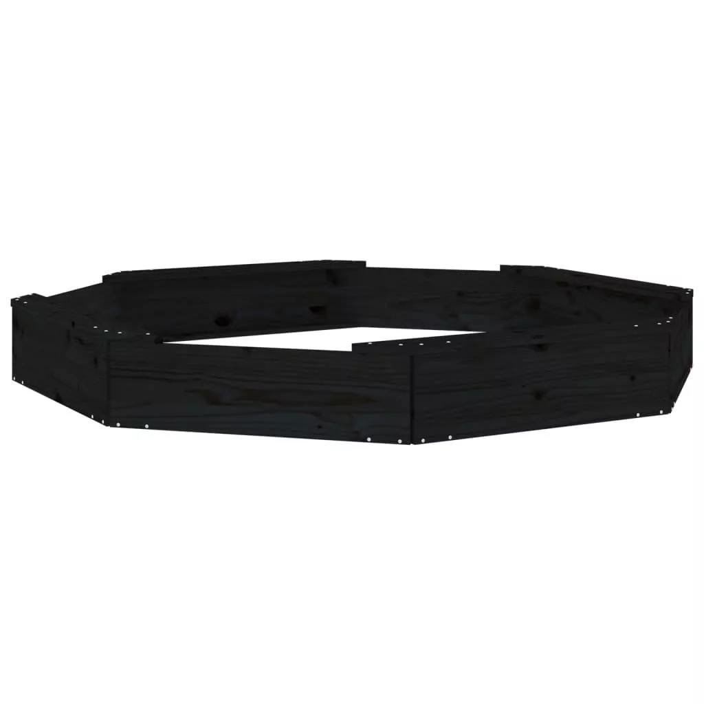 fekete nyolcszög alakú tömör fenyőfa homokozó ülésekkel