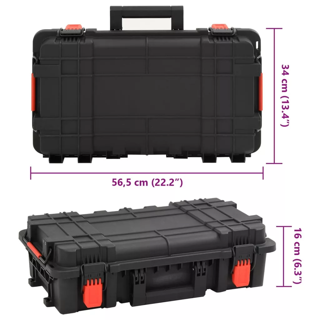 fekete polipropilén hordozható védőkoffer 56,5 x 34 x 16 cm
