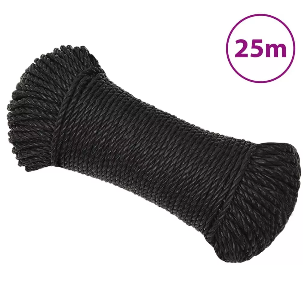 fekete polipropilén munkakötél 6 mm 25 m