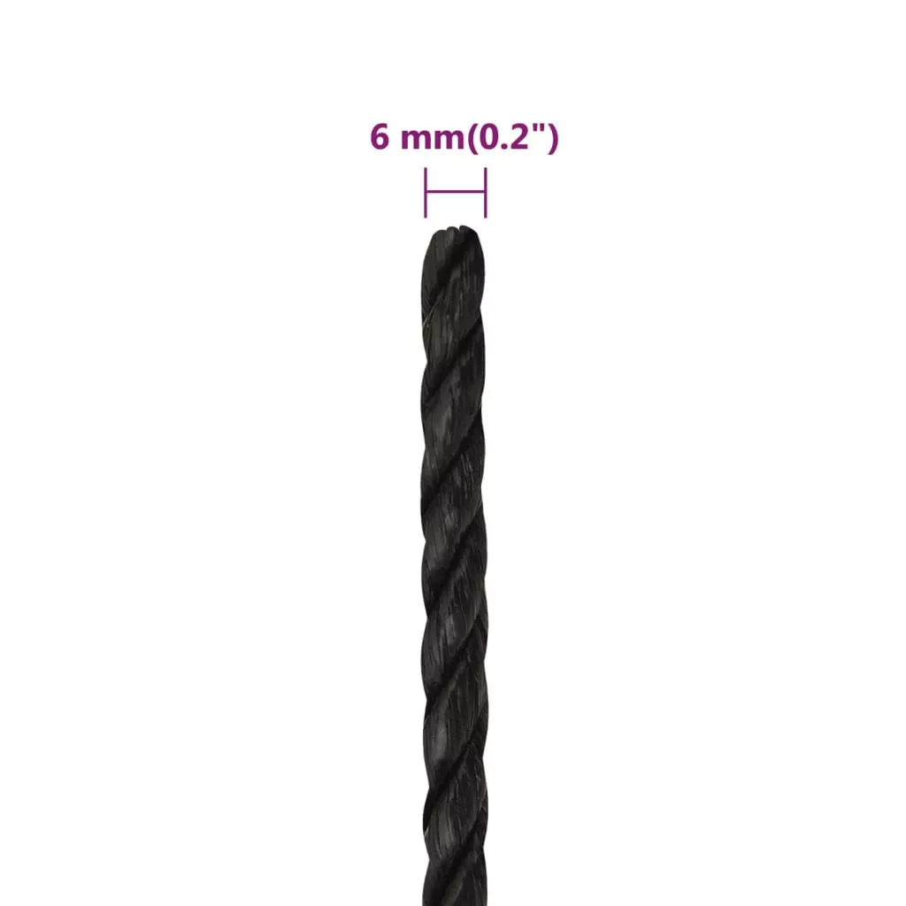 fekete polipropilén munkakötél 6 mm 500 m