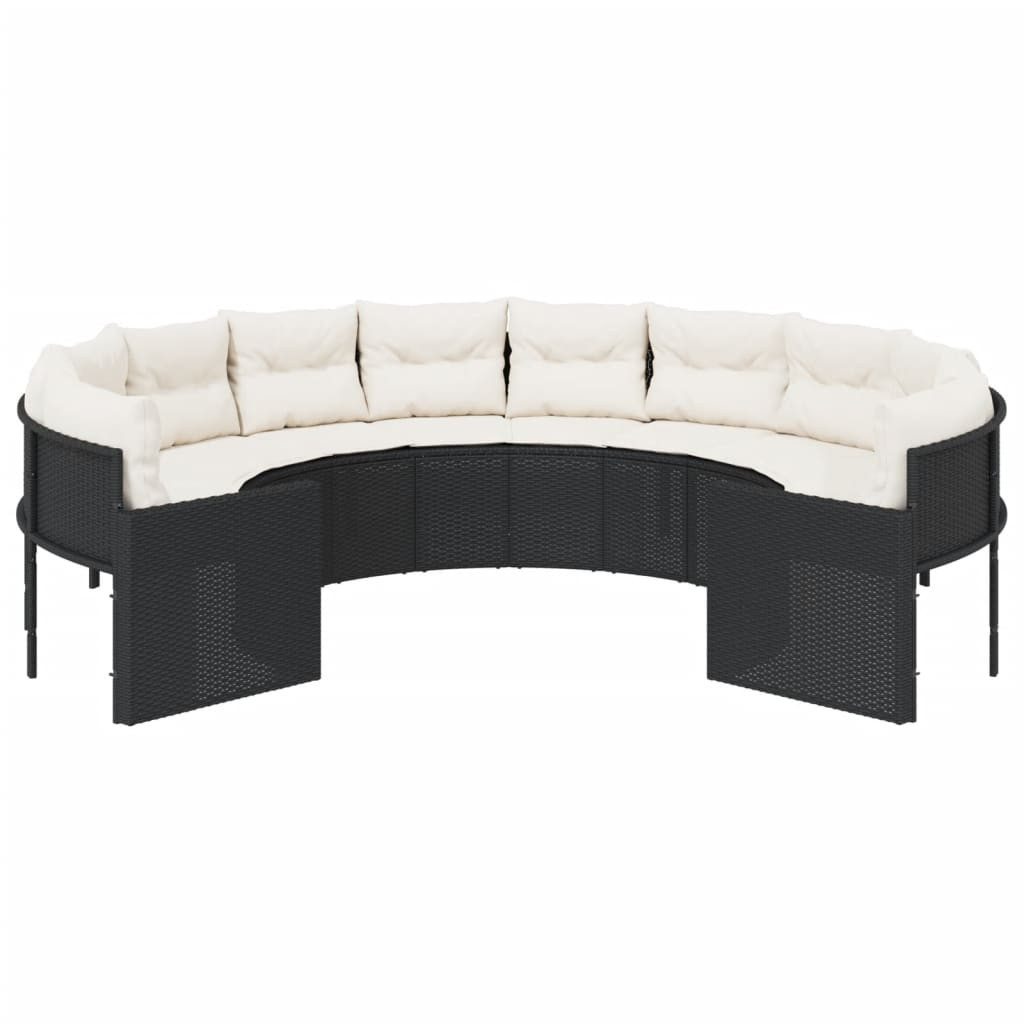 fekete polirattan kerek kerti kanapé párnákkal
