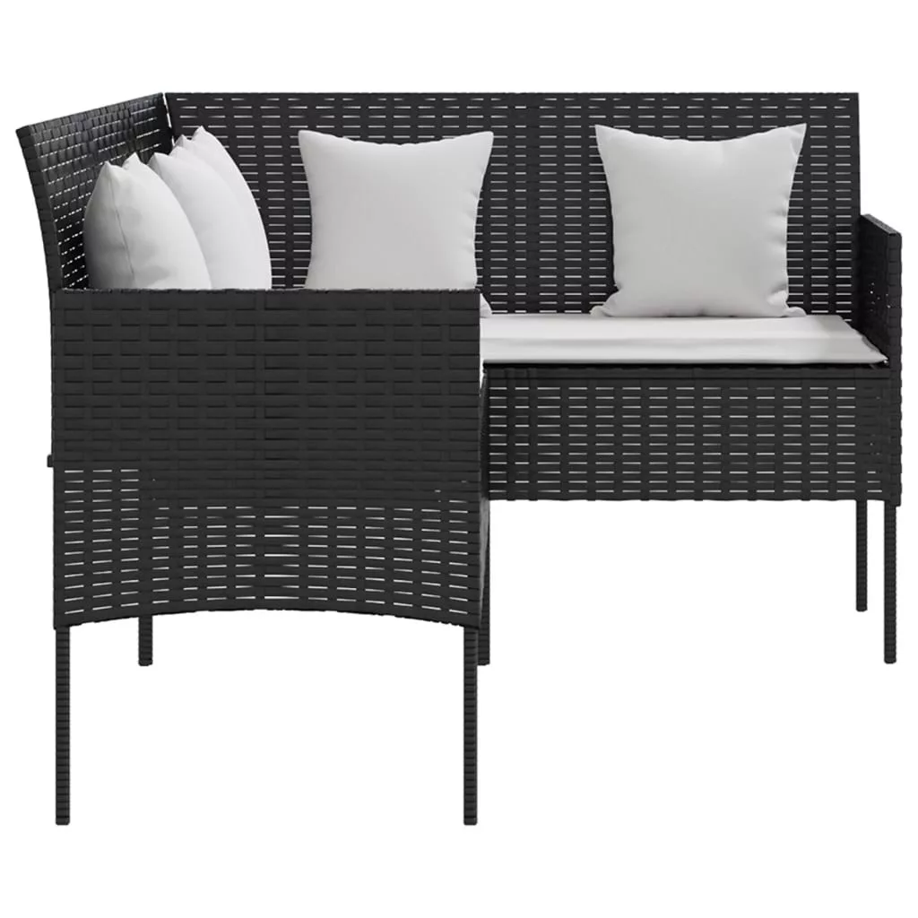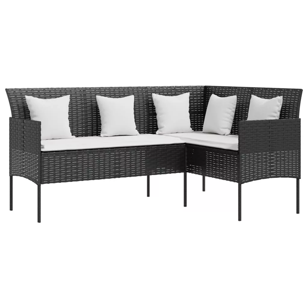 fekete polyrattan L-alakú kanapé párnákkal