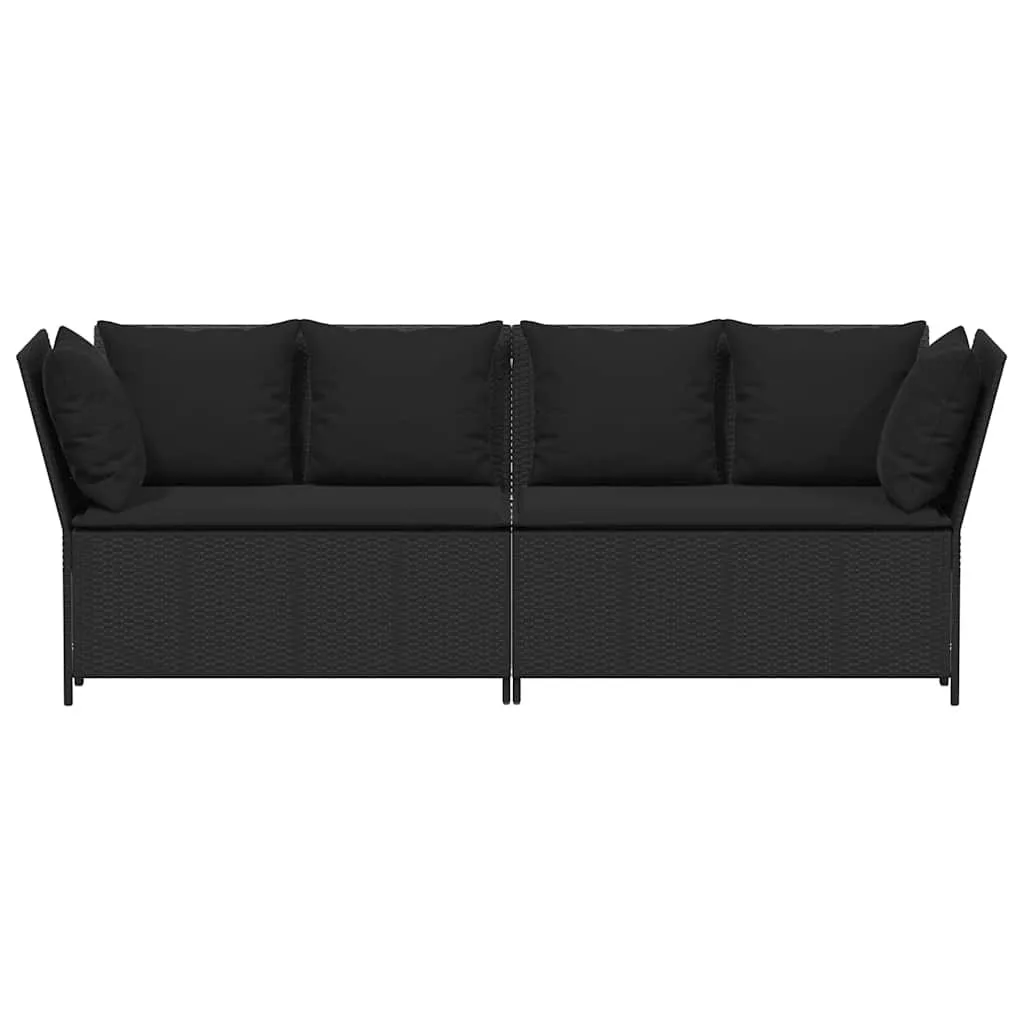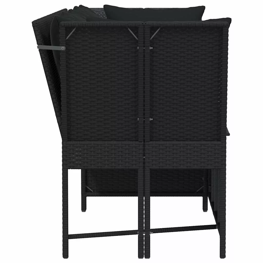 fekete polyrattan kerti kanapé párnákkal