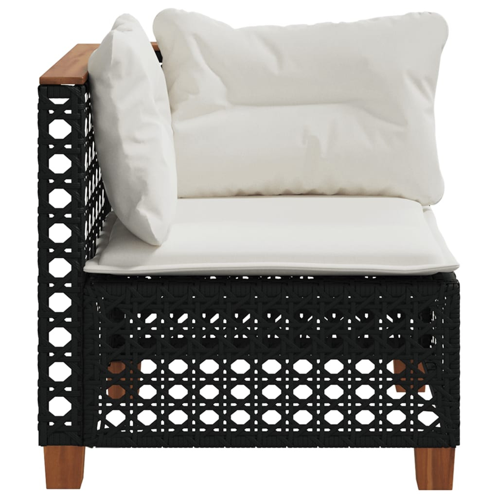 fekete polyrattan kerti sarokkanapé párnával