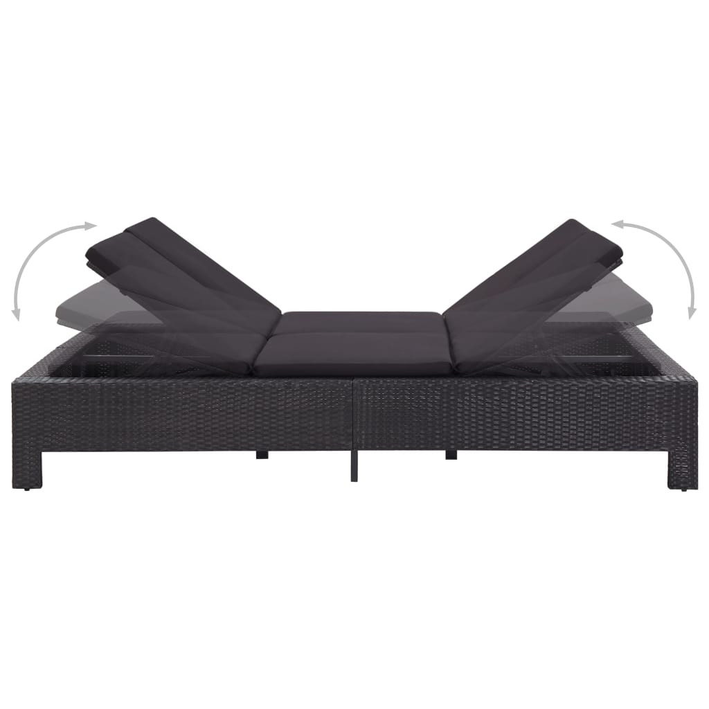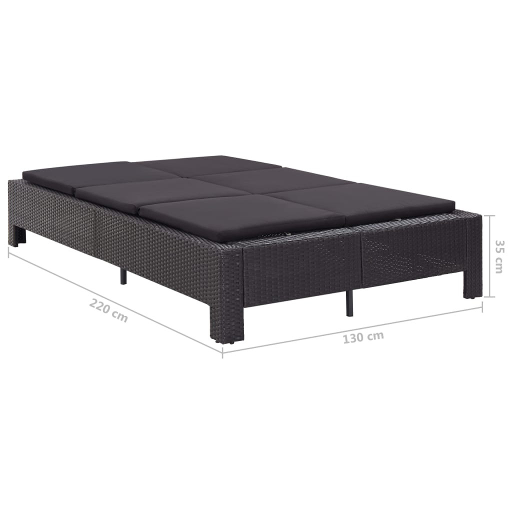 fekete polyrattan kétszemélyes napozóágy párnával