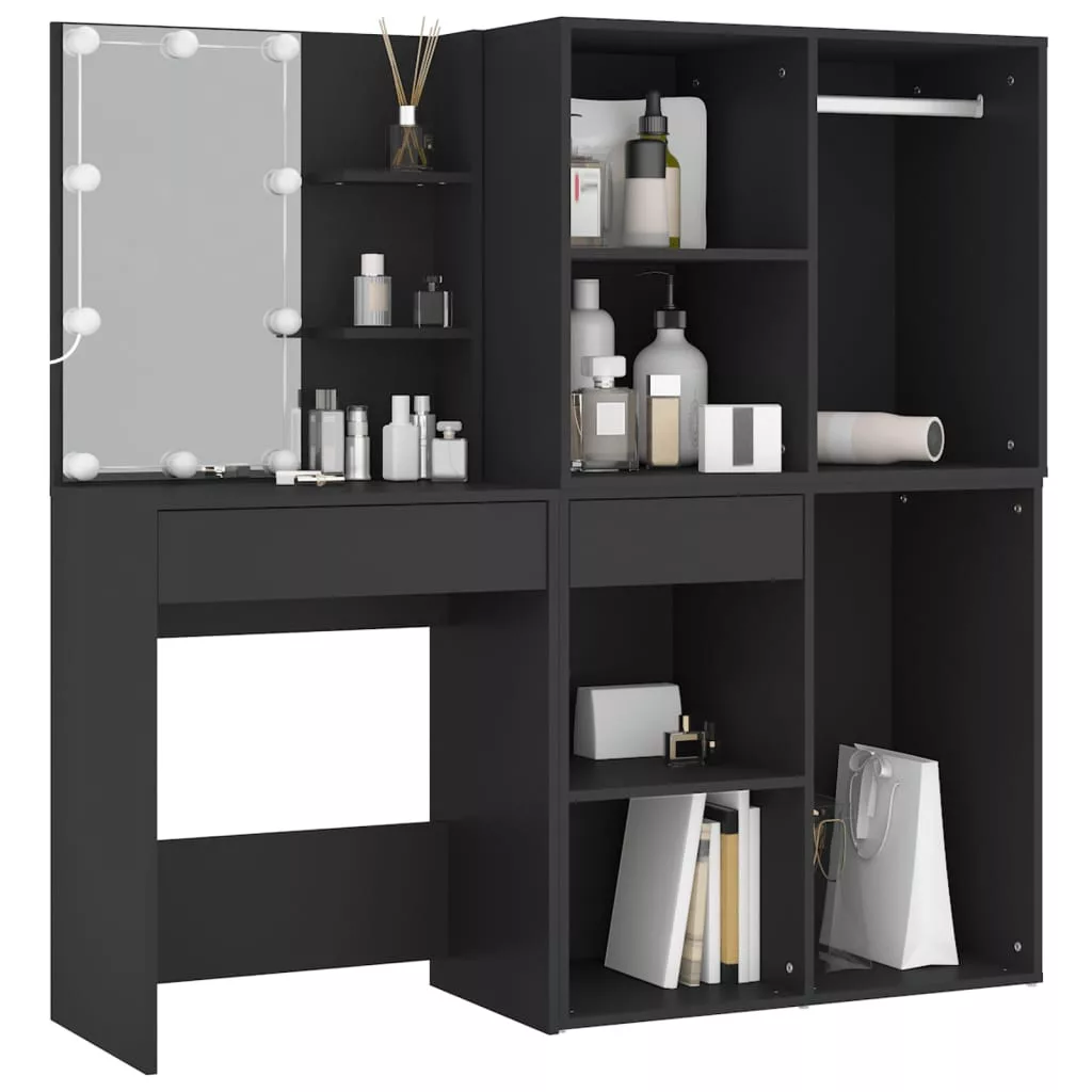 fekete szerelt fa LED-es fésülködőasztal szekrényekkel