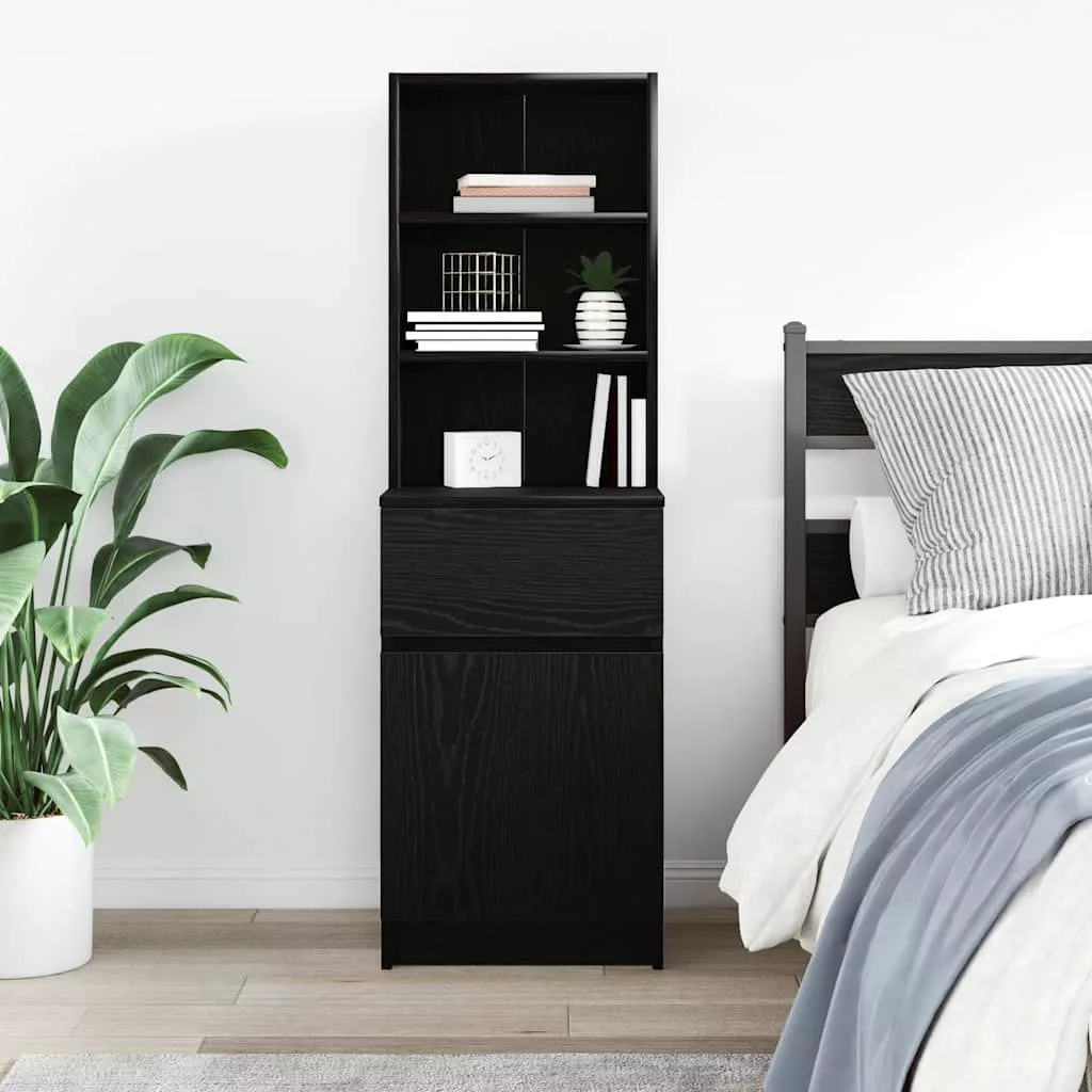 fekete szerelt fa éjjeliszekrény 39x35x125 cm